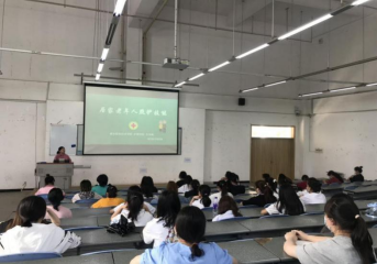 2022年4月12日,护理学院任冬梅老师在青图附201为 40多名在校学生分享了居家老年人照护技能。