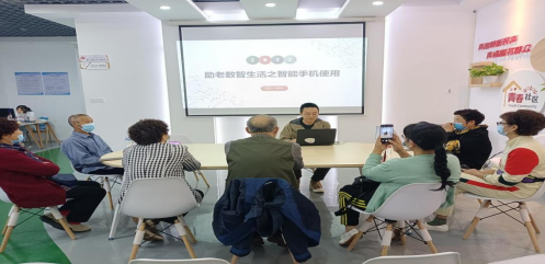 2022年9月23日,为助力老年人适应信息技术的发展,增添老年人生活趣味,智能制造与信息工程学院党员教师周保兴来到青江路社区综合文化服务中心,为社区老年人开展“助老数智生活之三——“美”起来”培训讲座。此次培训围绕老年人的拍照、文娱、图文编辑、医疗挂号等生活场景,帮助老年人更好地适应和融入信息社会,为老年人的数智生活提供专业的教育支持服务。