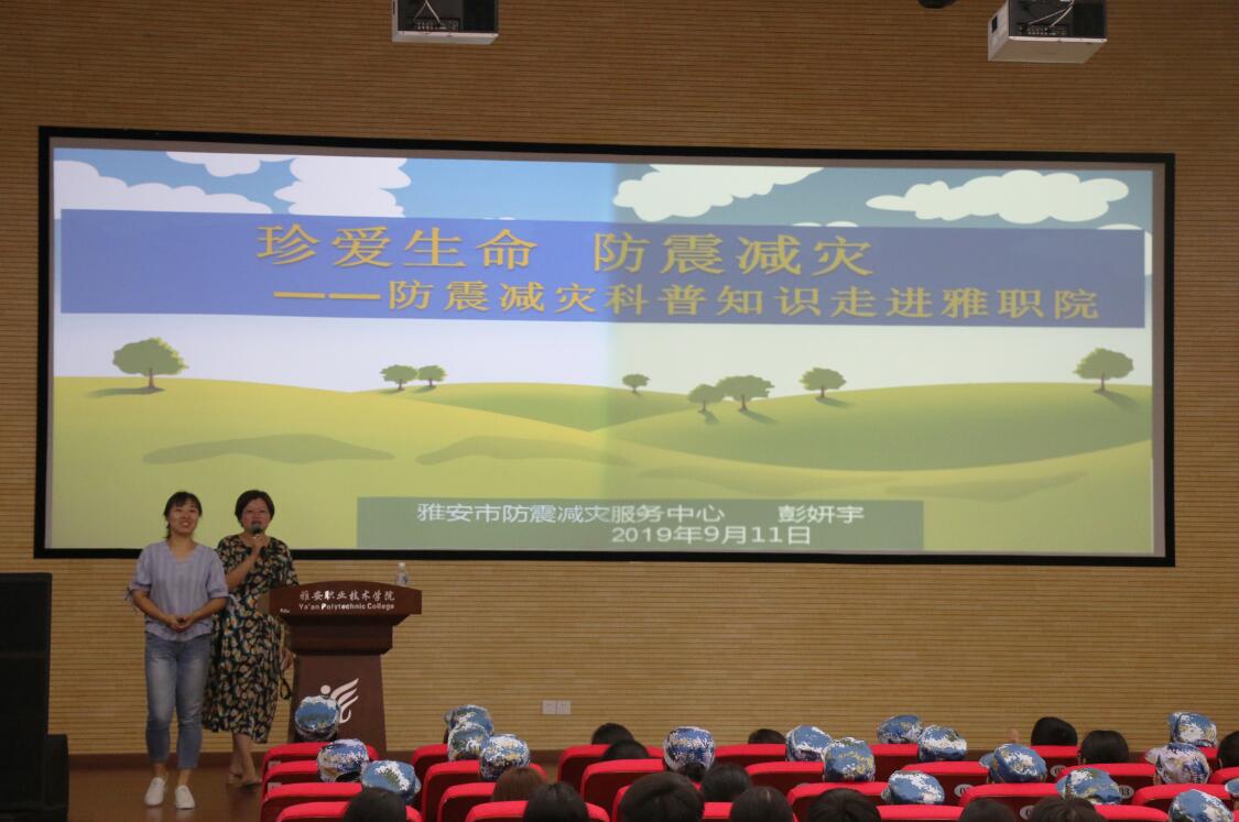 为增强大学生防震防灾意识,学习相关自救常识,减轻灾害影响,由学生处主办、易班学生工作站协办的“守护生命 防震减灾”讲座于9月11日下午在青年路校区举行。讲座由雅安市防震减灾服务中心彭妍宇老师主讲,青年路校...