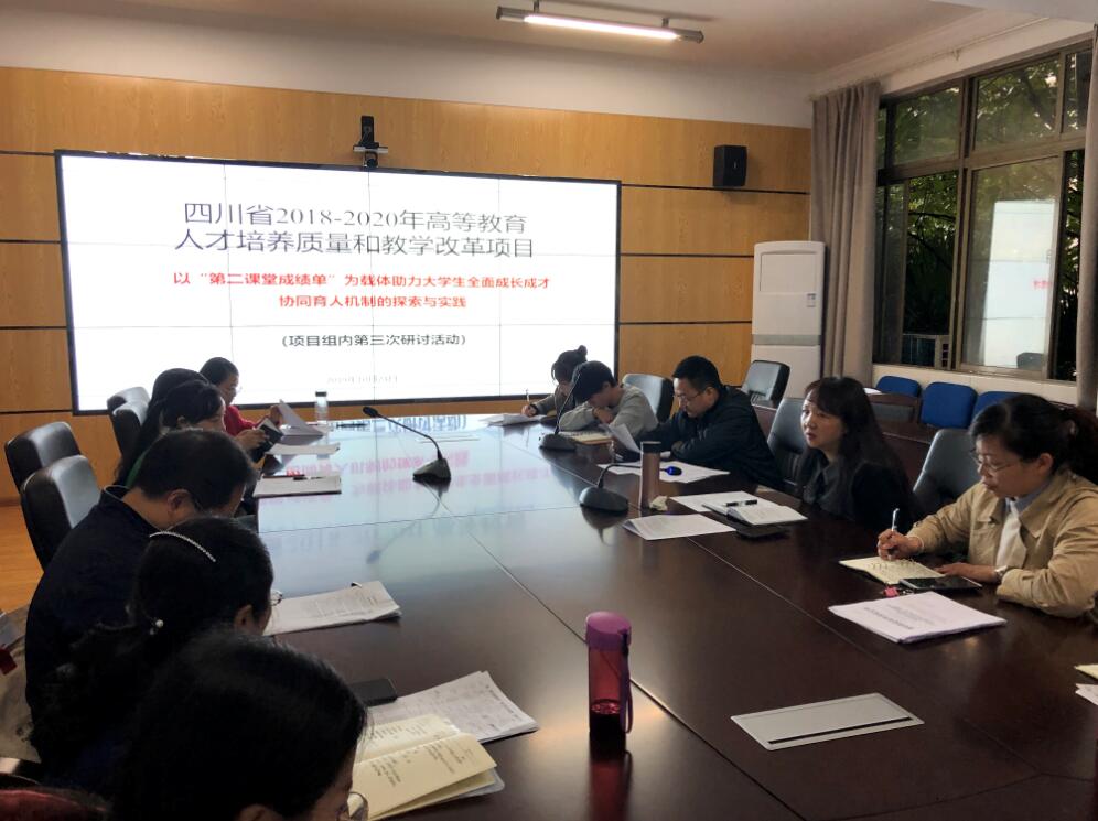 2019年10月24日,四川省2018-2020年高等教育人才培养质量和教学改革项目-“第二课堂成绩单”项目组,第三次组内研讨会在学院青年路校区B207举行,学院党委副书记付洪涛,团委、教务处、学生会分管领导,各二级学院分...