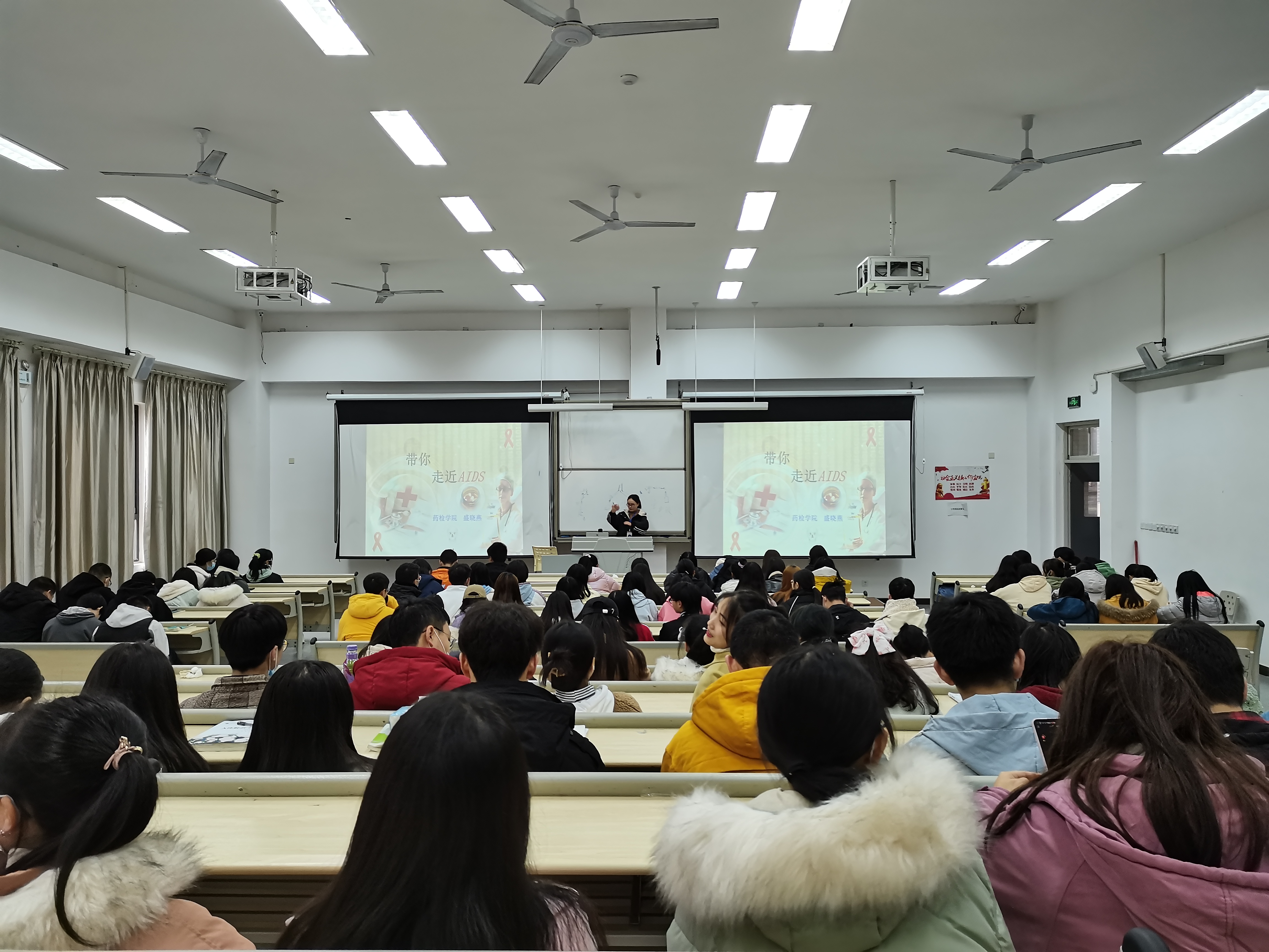 为了普及艾滋病相关知识,增强大学生健康保护意识,帮助大学生养成健康文明的生活方式,药学与检验学院于12月1日中午13:00在经开区1204教室组织开展了由盛晓燕老师主讲的题为《带你走进AISD》的艾滋病预防专题讲座,...
