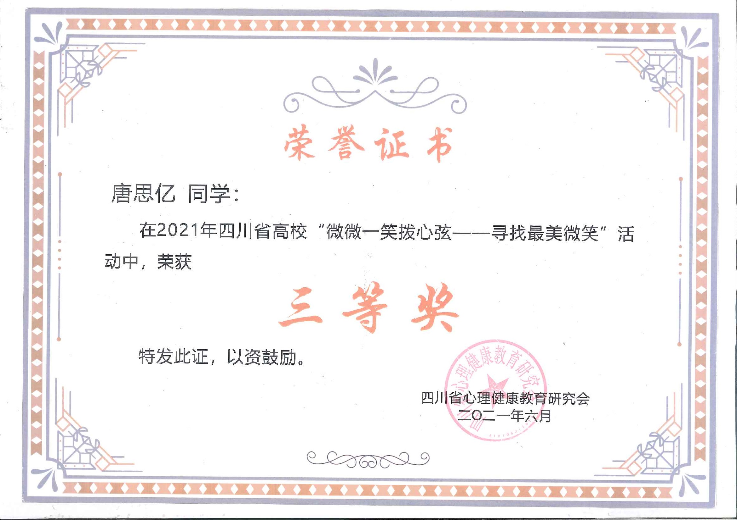 10-11-2021学院学生荣获2021年省高校“微微一笑拨心弦—寻找最美微笑”活动三等奖