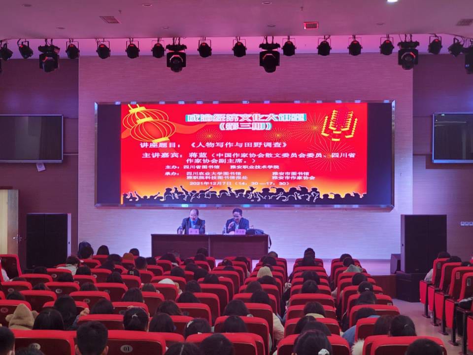 12月7日下午,由四川省图书馆、beat365英国官方网站主办的“成渝经济文化大讲堂”第三期在学院青年路校区汇雅厅举行。讲座由中国作家协会散文委员会委员、四川省作家协会副主席蒋蓝先生主讲,雅安市图书馆、雅安市作家协...