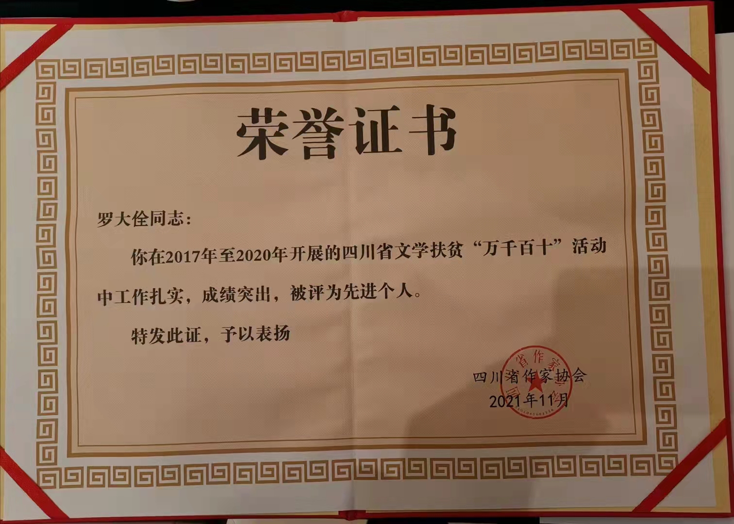 12-10-2021我院教师荣获“四川省文学扶贫先进个人”