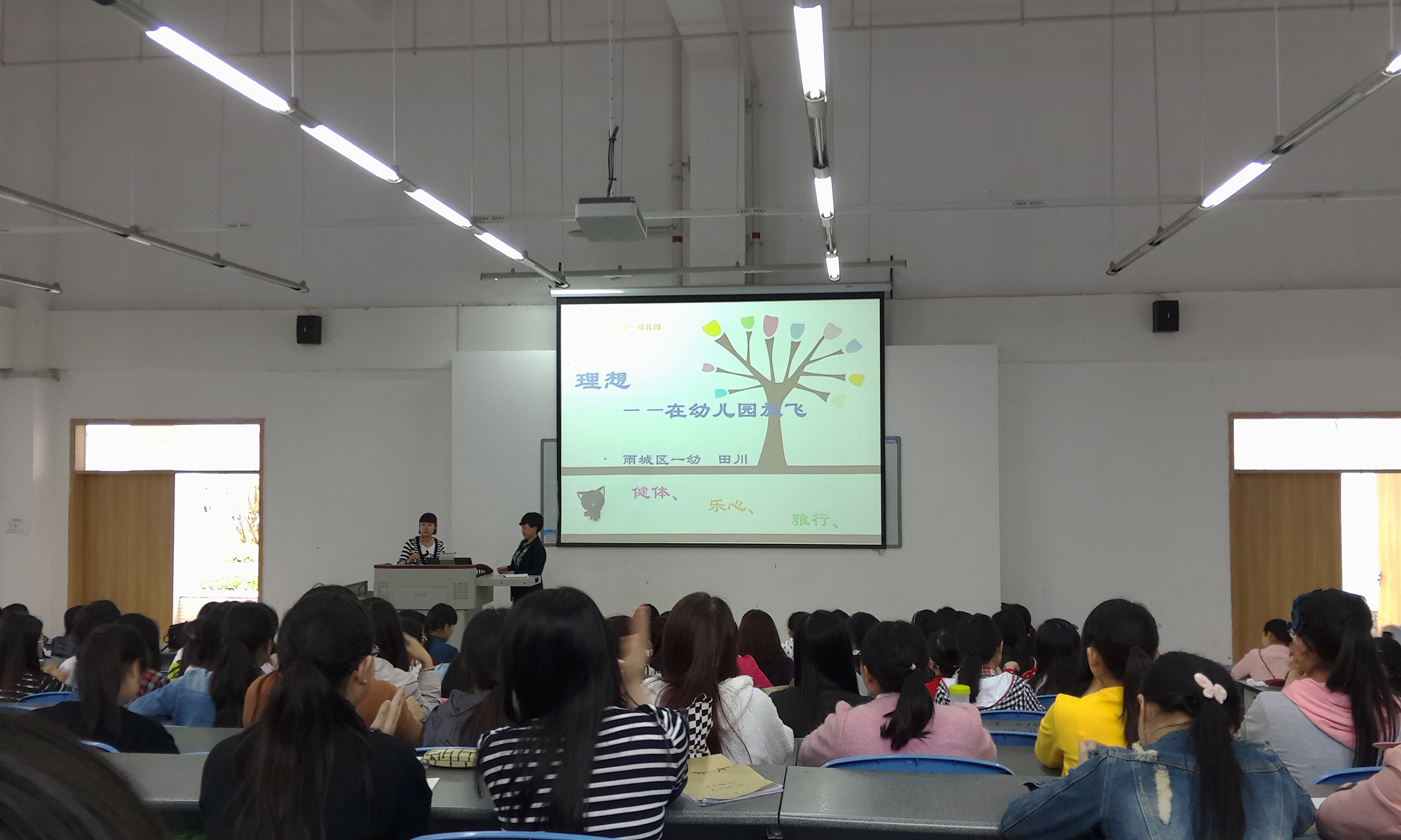 4月21日,雅安市雨城区第一幼儿园(学院附属幼儿园)园长田川老师来院为教育系学前教育、特殊教育专业的同学开展了“理想——在幼儿园中放飞”的讲座。 田老师结合自身的成长经历和工作经验,列举分析各种案例,引...