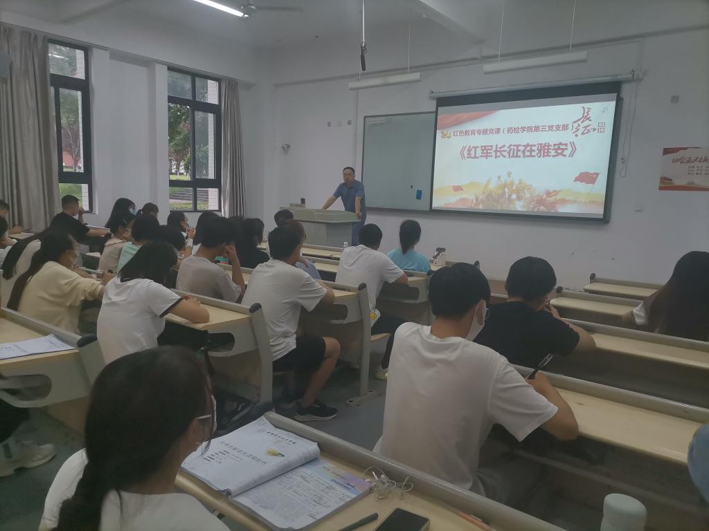 为扎实推动党史学习教育常态化,增强同学们对长征精神丰富内涵的理解,6月19日晚7时,药检学院党总支书记王伟才在经开校区1107教室向近80名入党积极分子同学作了《红军长征在雅安》的红色教育专题讲座。 王伟才同...