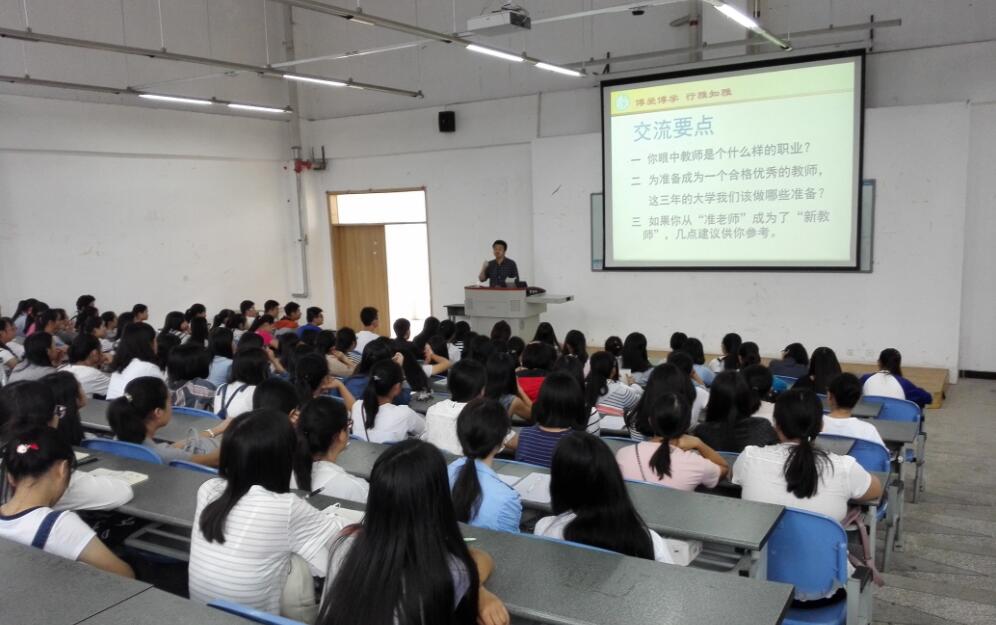 【本网讯】9月7日-8日,教育系在开学季邀请到雅安市第一幼儿园、雅安市实验幼儿园园长田川和雅安市第四小学校长谢建明分别为教育系2016级学前教育、特殊教育学生和语文教育、数学教育、英语教育的学生做了“如何成为...