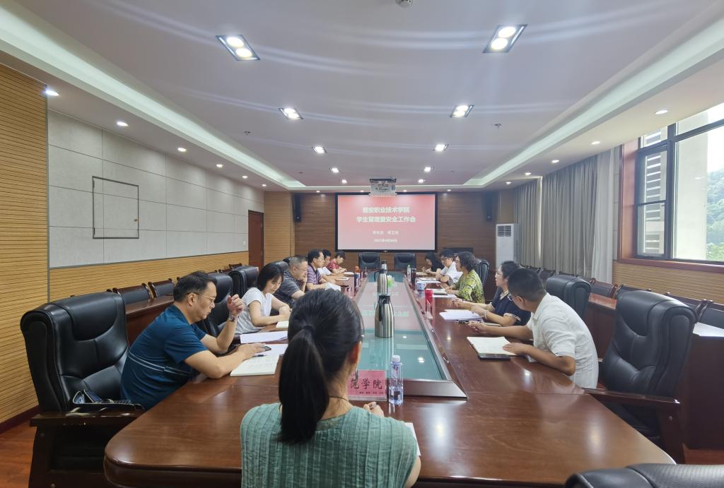 为做好学院安全稳定工作,进一步提升学生工作队伍能力素质与服务水平,结合学院党政工作重点, 6月26日,学院在经开区综合楼303会议室召开学生管理暨安全工作会,学院工会主席夏安琼,学生处、保卫处负责人及各二级党总支(直属党支部)书记参加会议。会上,夏安琼表示学生安全工作重于泰山,提出了四个要求。一要高度重视、常抓不懈;二要继续完善常态化工作机制,做好学生安全教育与管理工作;三要强化以学生为中心的工作和服...