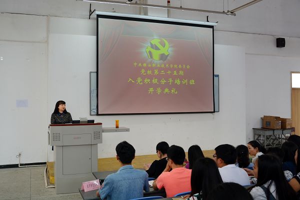 【本网讯】5月3日下午,学院党校第二十五期入党积极分子培训班在青年路校区图阶101多媒体教室举行了开学典礼。学院党委副书记付洪涛,党委组织部部长、人事处处长夏安琼,党委组织部副部长、人事处副处长代英、各系党支部书记及学院党委组织部工作人和233名学员参加了开班仪式。开学典礼由夏安琼主持。