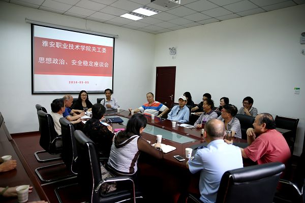 【本网讯】为了协助学院抓好对学生的法治安全教育,帮助青少年健康发展、成长成才, 5月5日上午,学院关工委邀请市关工委法制宣讲团来院指导工作,在育才路办公楼B211会议室组织召开了思想政治、安全稳定工作座谈会。学院关工委执行主任李安,副主任陈顺贵、张敬春,雅安市关工委法治宣讲团团长郑有庆、副团长刘全金,雅安市禁毒大队教导员文晓燕、雨城区青江派出所副所长张昌煌、院关工委校校纪校风安全稳定督导组全体成员和学生处、保卫处、团委负责人参加了座谈会,大家共商面对青年学子的预防犯罪、远离毒品、增强法治意识办法和措施。会议由李安主持。