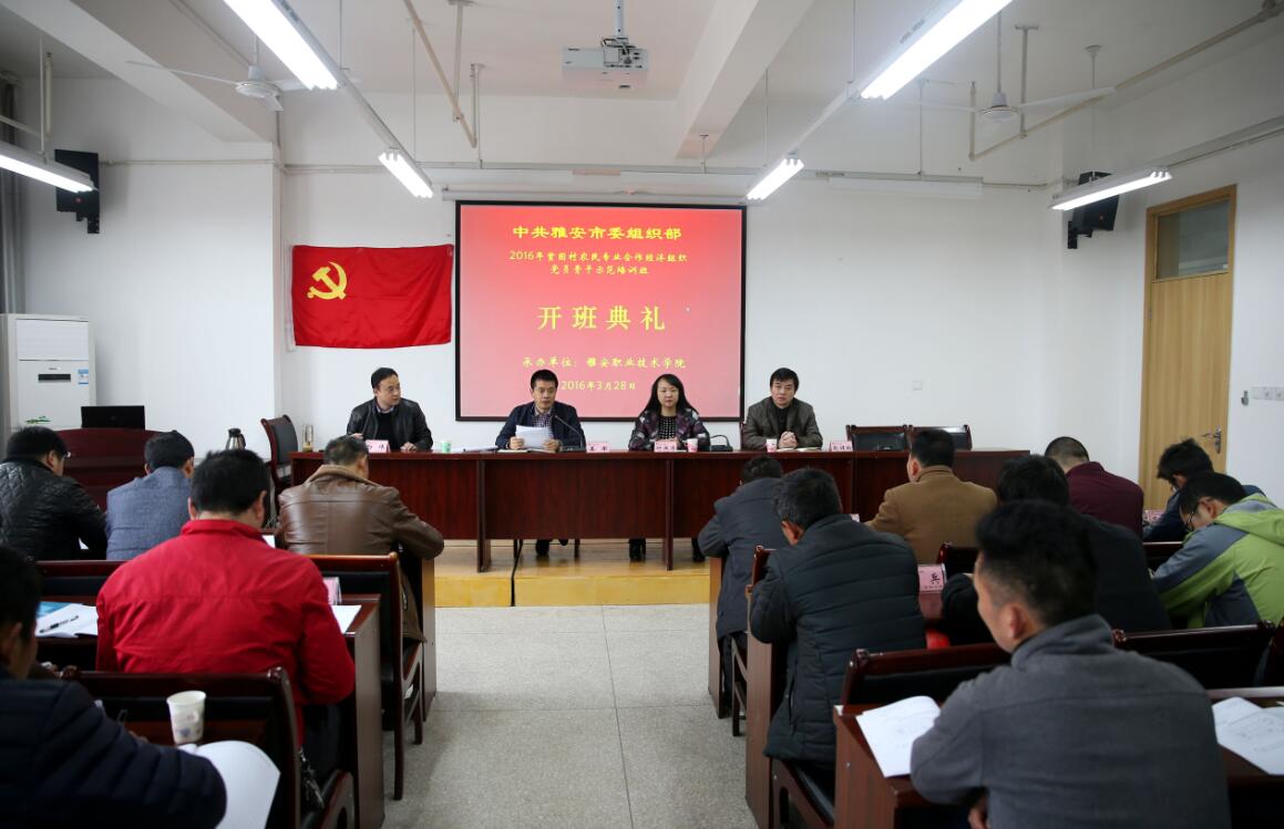【本网讯】3月28日,受市委组织部委托,雅安2016年贫困村农专合组织基层党员骨干示范培训班在我院开班。共有来自六县两区的51名学员,以及我院对口帮扶的天全县新华乡铜山村高啟明、孙飞两名同志参加了开班仪式,全体党员重温了入党誓词。