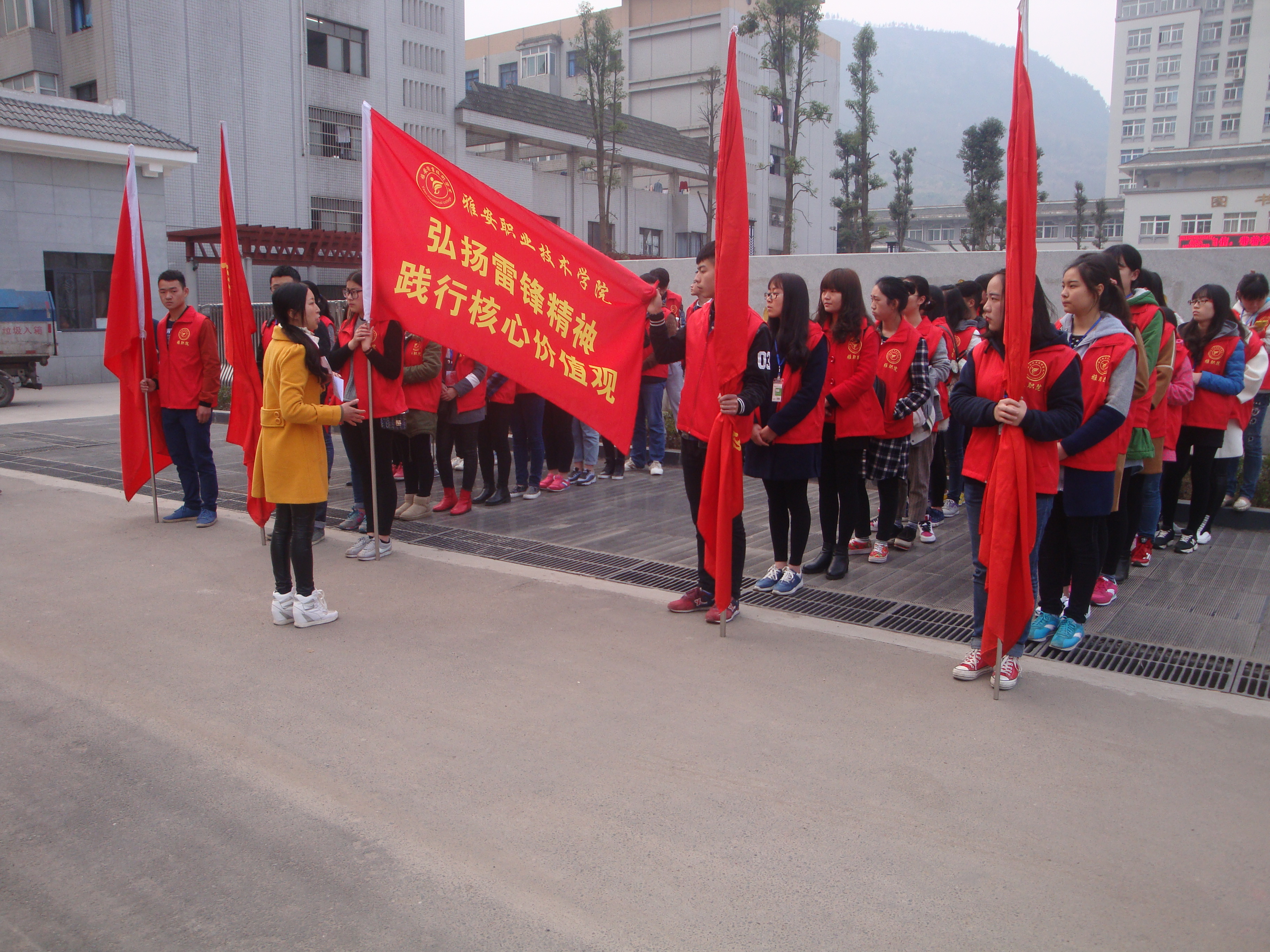 【本网讯】今年3月5日是第53个“学雷锋”纪念日,为切实加强我院青年学子思想道德建设,大力培育和践行社会主义核心价值观,根据雅安市文明委〔2016〕1号《关于开展2016年公民道德建设宣传教育月活动的通知》要求,结合我院实际,3月4日下午,院团委在青年路校区举行了以“学雷锋•育德行•践行核心价值观”为主题的“学雷锋”暨公民道德宣传教育月活动启动仪式。