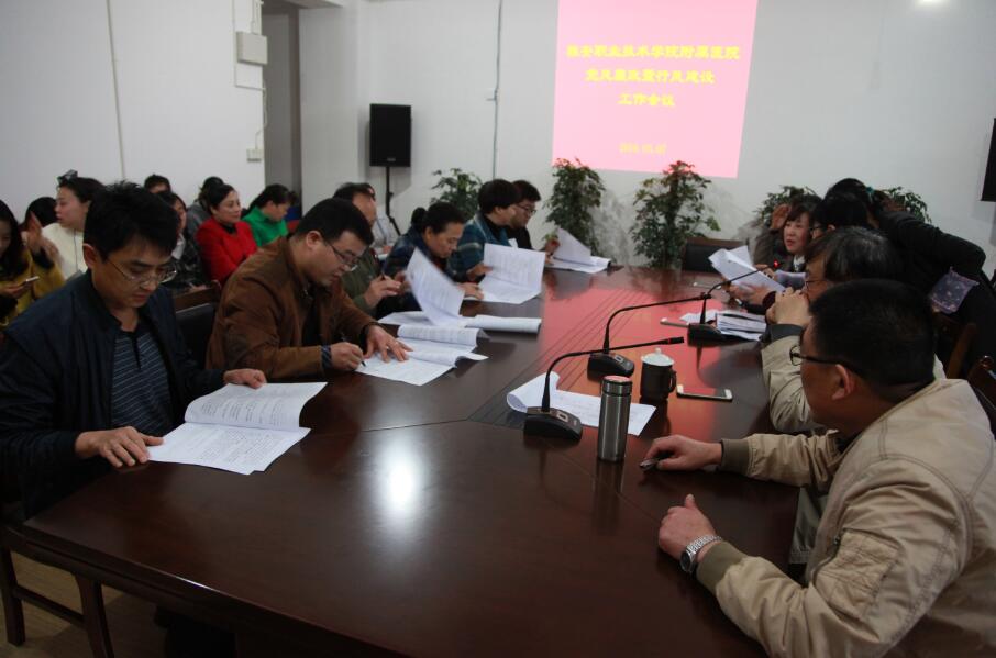 【本网讯】3月7日下午,附属医院党支部在行政办公区301会议室召开党员干部党风廉政建设和行风建设工作会。会议由党支部书记祝继英主持,党支部副书记宋健,副院长杨啸宇、薛正毅、何跃以及47名中层干部参会。