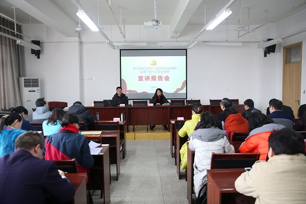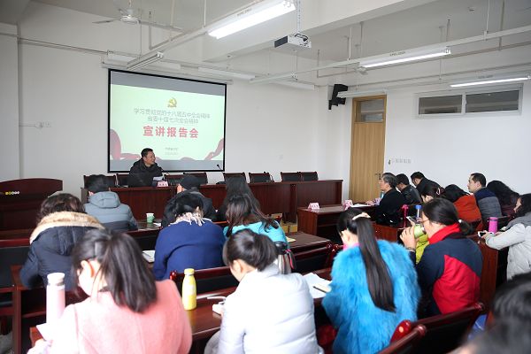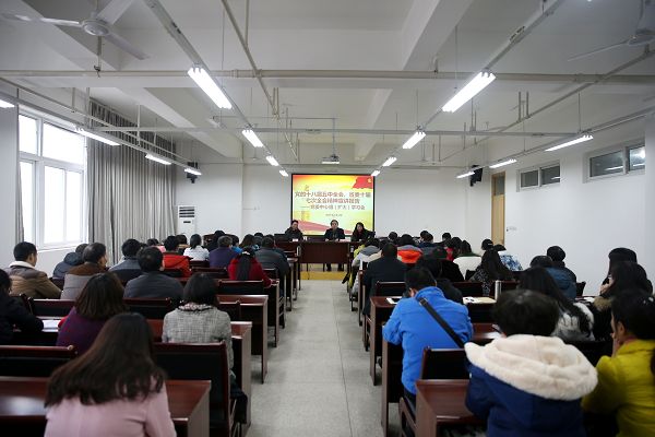 【本网讯】12月22日下午,在青年路校区图书综合楼903会议室,学院党委召开中心组(扩大)学习会,聆听了市委宣讲团成员、党校调研员张德义副教授作的学习贯彻党的十八届五中全会和省委十届七次全会精神宣讲报告。党委班子成员、中层干部、各党支部支委、各团总支书记、思政部全体教师参会。报告会由党委副书记付洪涛主持。