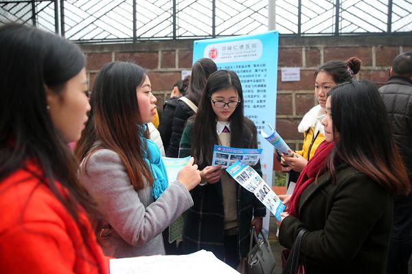 【本网讯】12月11日,学院第二十二届毕业生大型双选会在青年路校区女生公寓楼架空层举行。本次双选会历经数月精心准备,吸引了来自省内外210家单位前来参展,涵盖医疗卫生、教育、机械电子、旅游管理等专业,共提供就业岗位3200余个。绵竹市卫计局、普格县卫计局、宁南县卫计局、喜德县卫计局等28家单位会同当地组织、人事、宣传部门前来举行专场招聘,提供带编岗位200余个。据不完全统计,约有2000名毕业生回校参加了本次双选会。