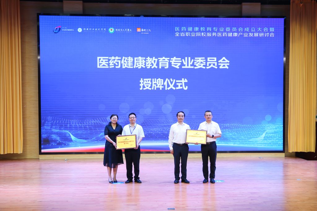 省职教学会秘书长姜光丽宣读医药健康教育专业委员会组织机构及成员名单,与张大凯一起为全体成员单位颁发聘书。张大凯单独向beat365校长黄诚、教务处长李成忠授予主任单位和秘书长单位牌匾。