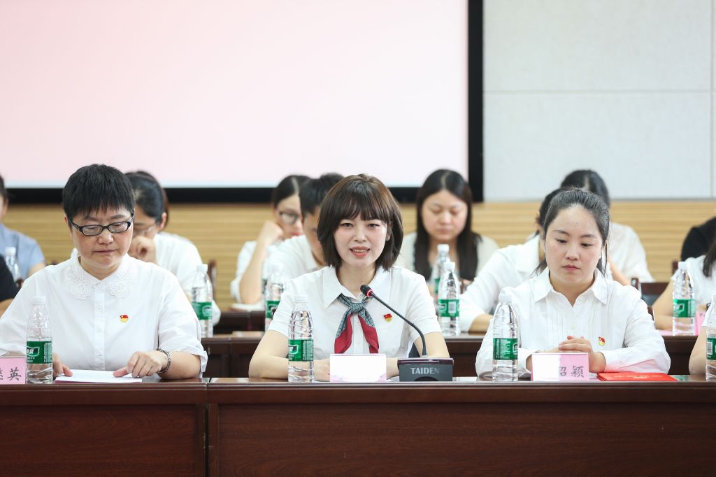 师范学院教师党员李燕、中医与康复养生学院直属党支部书记祝继英、护理学院党总支书记叶芋伶分别作为“两优一先”受表彰代表发言。天全县仁义镇小落村驻村工作队第一书记郑献辉,离退休党总支第二党支部书记袁宗学分别作为驻村干部和离退休老党员代表发言。