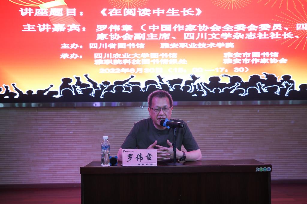 罗伟章先生《在阅读中生长》的讲座,主要从“我们为什么需要阅读、怎样阅读、阅读与书写”这个三个方面阐述了自己对阅读的理解,讲述了自己在阅读中的感悟,分享了诸多阅读的方法。罗伟章先生认为人是有局限性的,而阅读的意义就在于它可以拓展人生的宽度。在阅读时,应进行创造性的阅读,要读出一部作品的情感、读出作品的局限。罗伟章先生还分享了自己的创作心得,他认为一部成功的作品中应当有“主动性”的人物,好的文学应当是关照社会、时代与人生的。