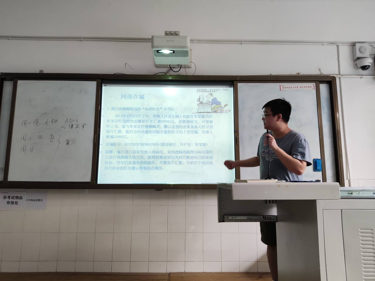 在主题教育活动中,以PPT的形式、结合相关真实案例分别向参与本次主题教育活动的学生讲解什么是电信诈骗、电信诈骗的形式,新型电信诈骗犯罪的严重危害性。其中在解释电信诈骗中重点向同学们介绍了不法分子主要通过电话、网络和短信方式,编造虚假信息,对受害人实施 远程、非接触式诈骗,诱使受害人给犯罪分子打款或转账的犯罪行为。
