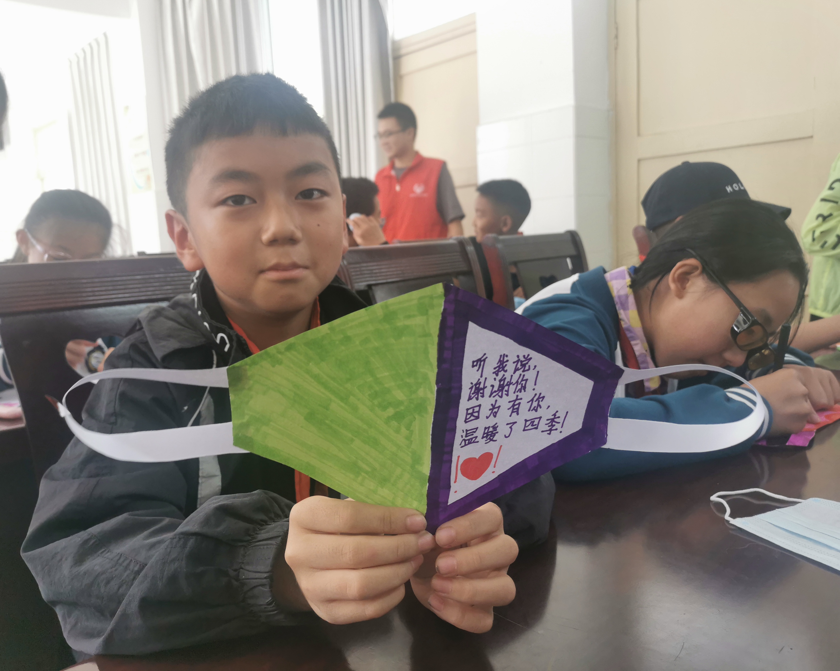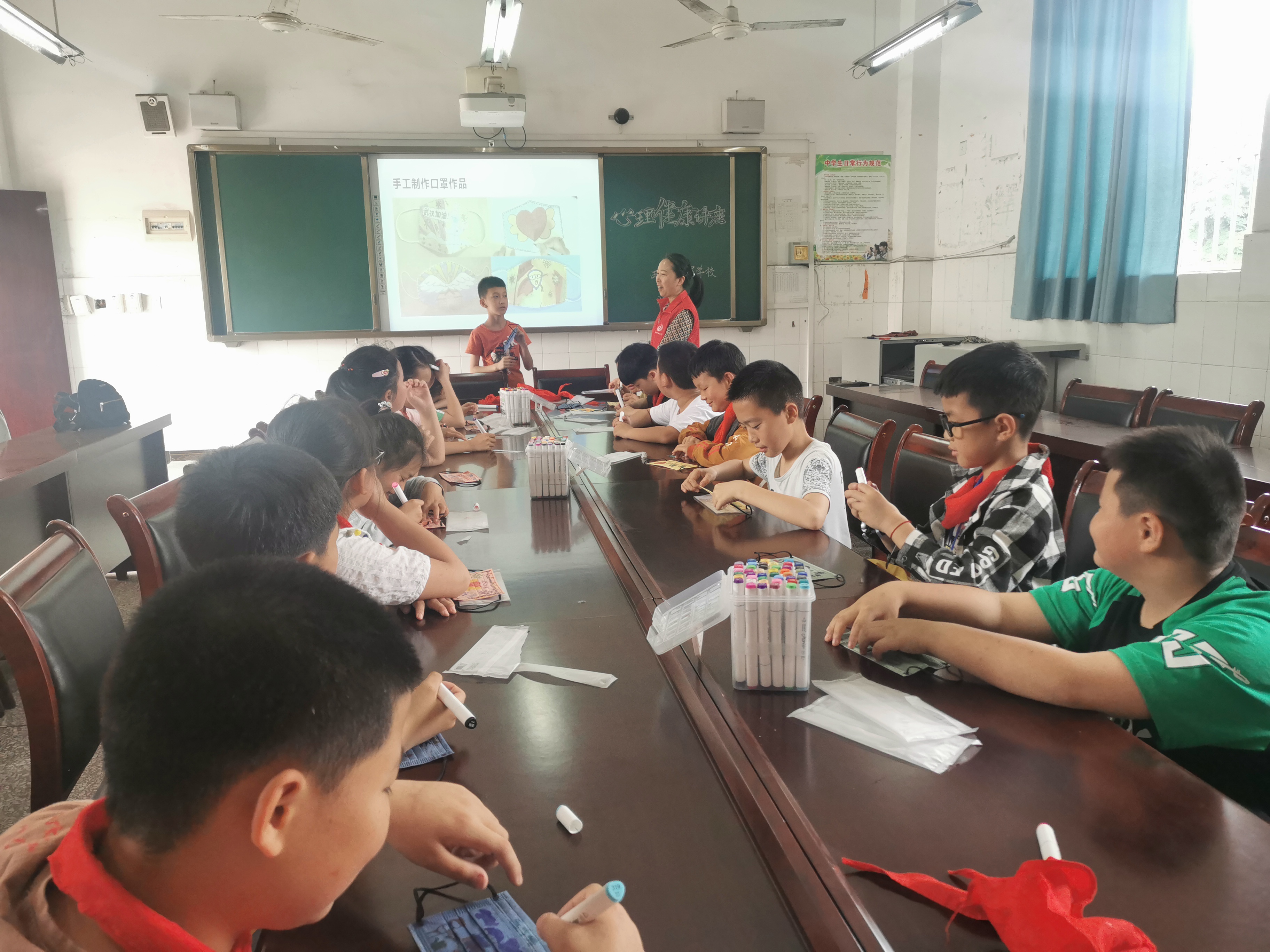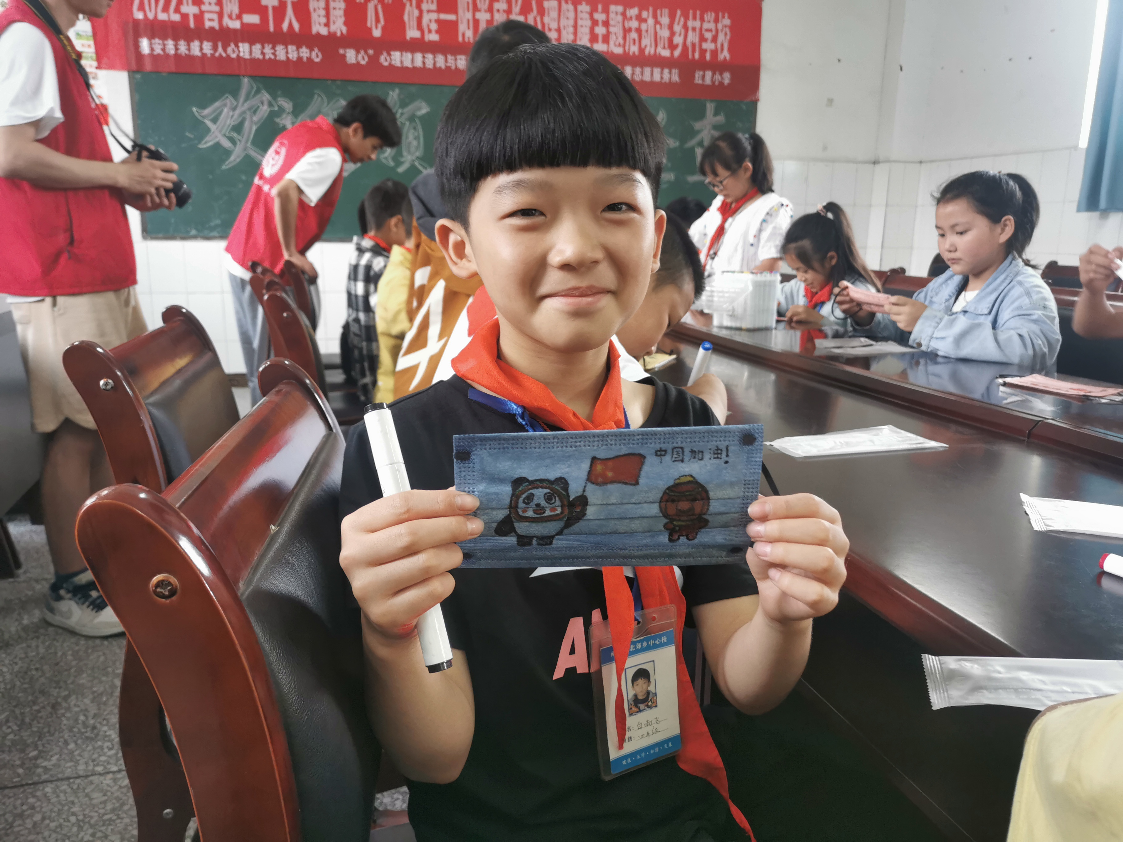 此次活动以“喜迎二十大 健康“心”征程”为主题,面向雨城区红星学校、草坝小学、多营镇学校三所学校开展心理健康活动,共计120余名学生参与。活动现场,同学们纷纷拿起画笔,发挥想象力,在不同颜色口罩上绘出最美的童心、绚丽多彩的图案,留下属于自己的美好。同学们或简单朴实地勾勒,或精致繁复地设计,都体现出同学们对待生活积极向上、不畏艰难的乐观态度,每个作品都饱含着对生活的美好期盼。