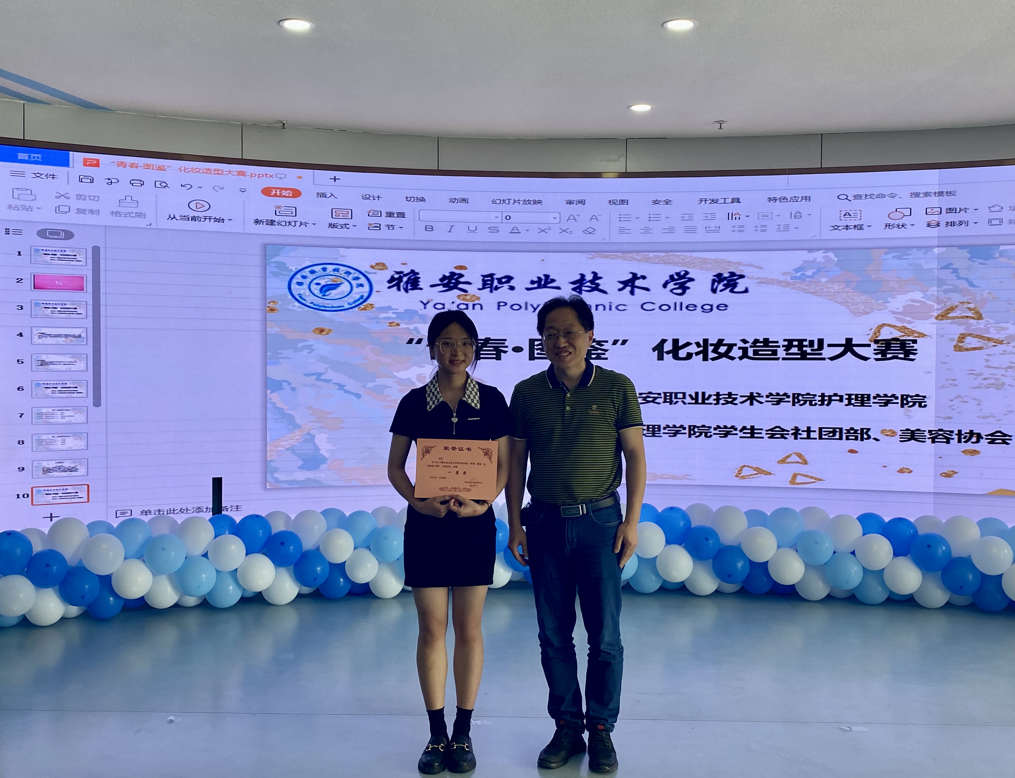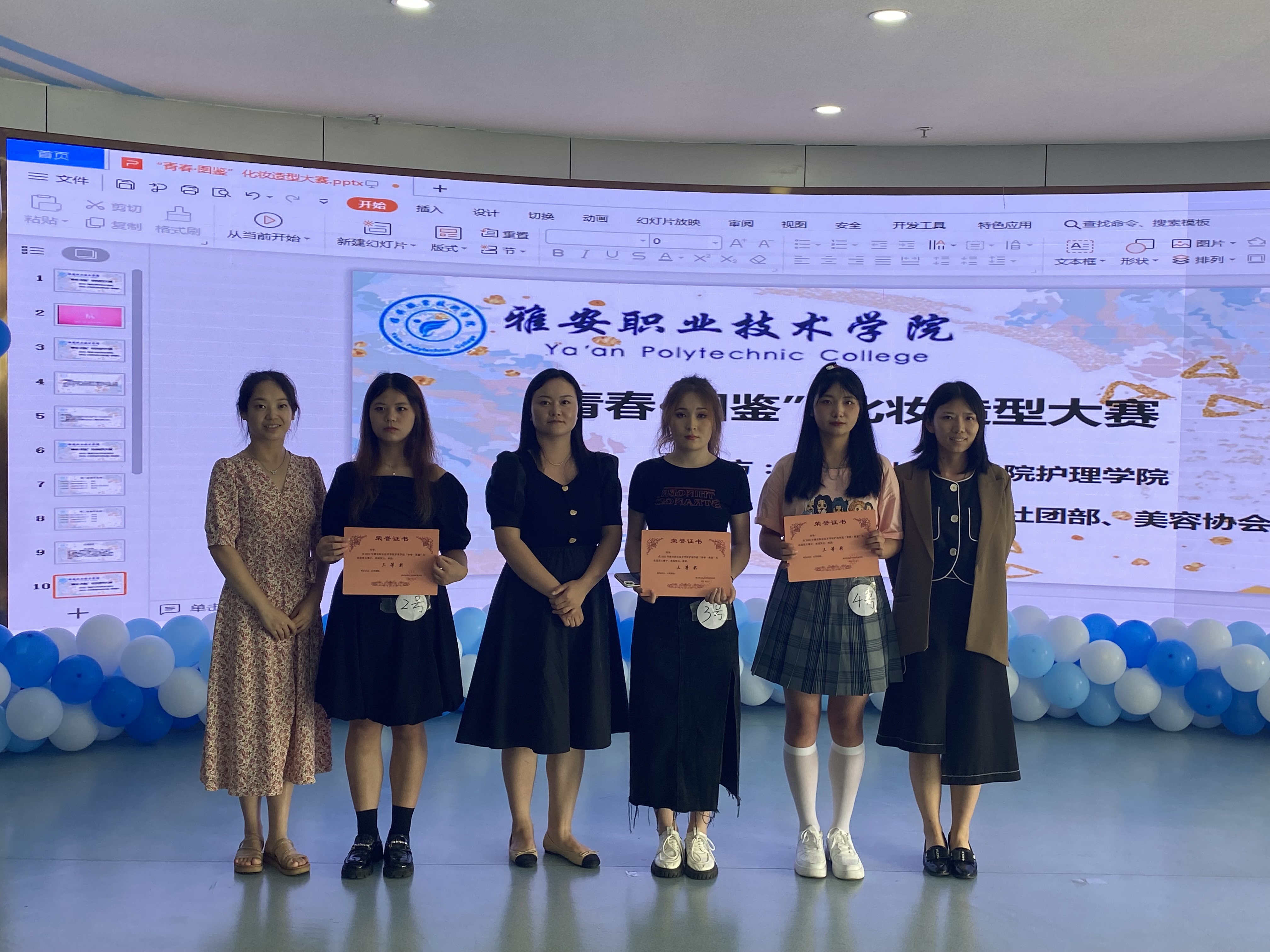 6月14号,由护理学院学生会社团部、美容协会举办的“青春·图鉴”化妆造型比赛在青年路多功能厅顺利举行。护理学院党总支书记杨泽刚,党总支副书记张翅,团总支副书记朱学坤、付相茹,护理学院教师杨苓梅、王菠、吴玉阳、汪文丽应邀担任评委。经过激烈角逐,8名选手从20余名参赛者中脱颖而出顺利进入决赛,护理学院线上线下1000余名师生观看了此次比赛。