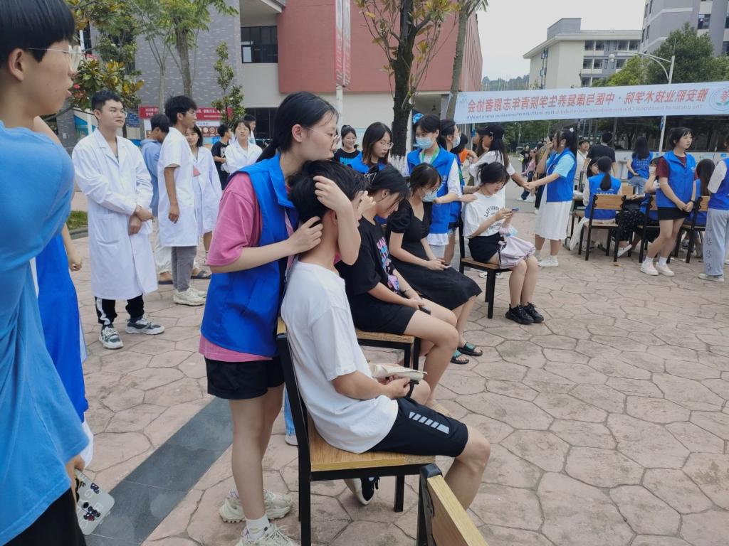 义诊活动在校园里成了一道美丽的风景线,前来咨询、体验的同学络绎不绝。志愿者们热情地为同学们进行推拿、测血压和贴艾灸等服务,同时宣传养成良好生活习惯的重要性及方法。现场活动热烈而有序。