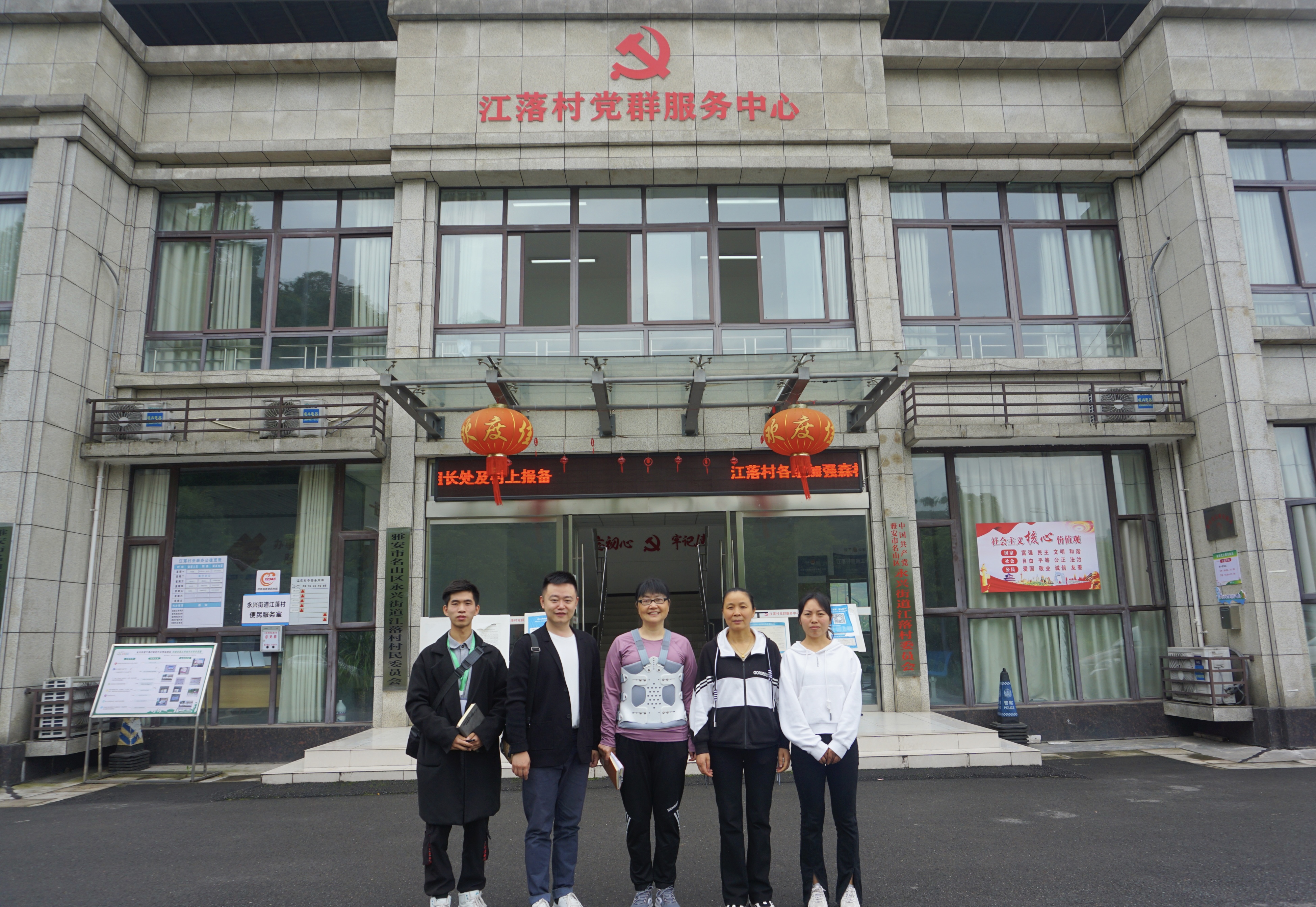 5月19日,中医与康复养生学院直属党支部书记祝继英、团总支书记赵武博以及学生干部一行4人,来到名山区江落村党群服务中心,与江落村党委副书记吴文珍、纪委书记张树红就党建工作结对共建助力街道疫情防控进行交流。