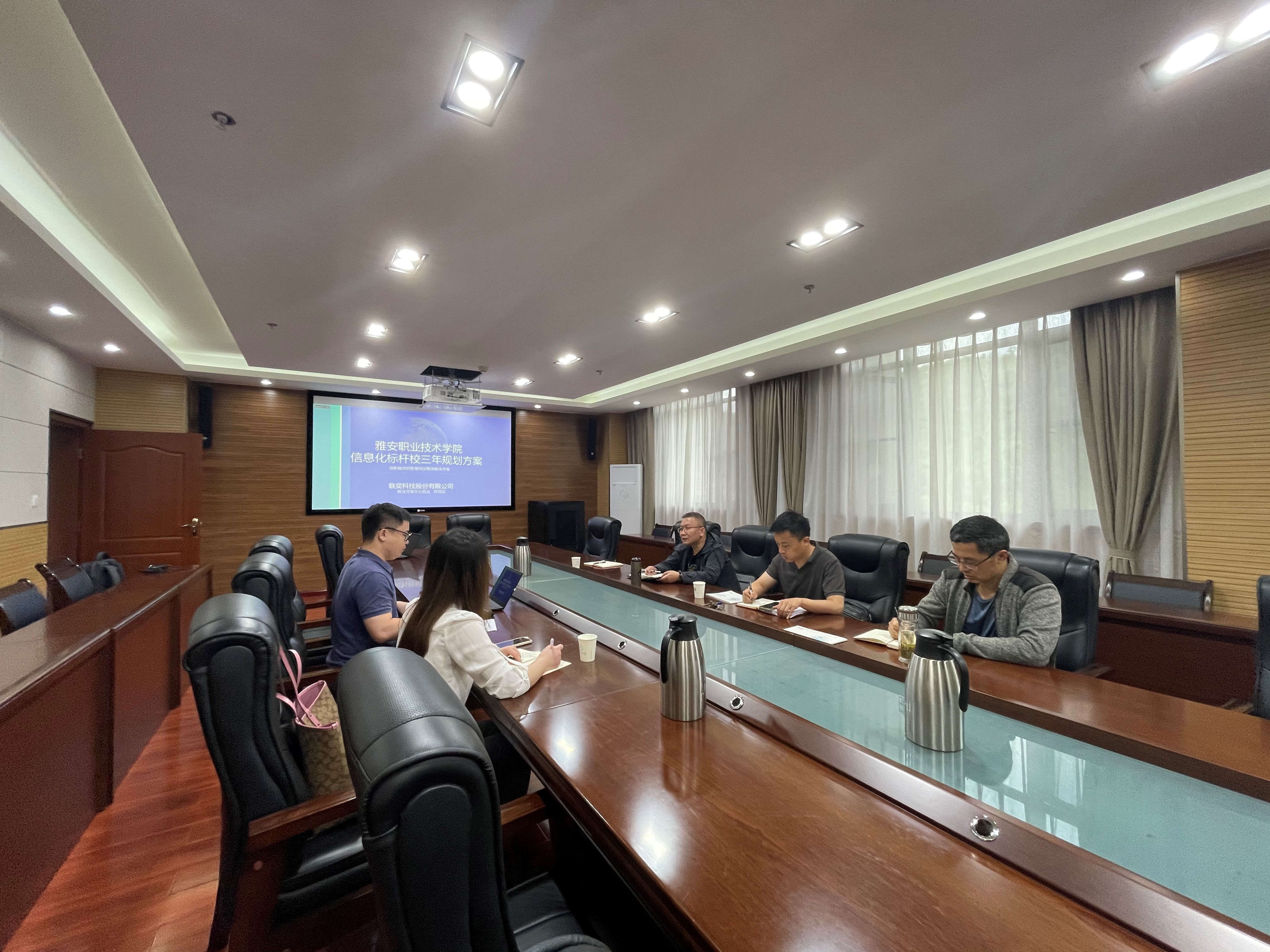 为进一步推进学院的信息化建设,做好信息化时代人才培养和内部治理。5月27日上午,beat365英国官方网站信息中心在经开区会议室303召开学院信息化建设标杆方案交流研讨会,会议由信息中心主任吕波主持。联奕科技股份有限公司工程师韩润滔、刘晨参与此次交流研讨会。