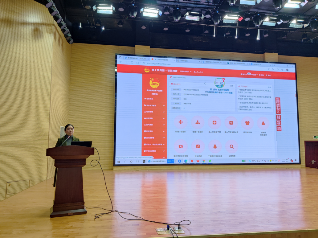 会上,团委教师高川程就智慧团建平台功能设置、权限管理及流程审批进行讲解,对网上共青团重点工作进行系统培训。智慧校园系统开发人员韩才围绕第二课堂成绩单的系统操作、积分录入、管理审核及学分认证向参会人员进行详细讲解。