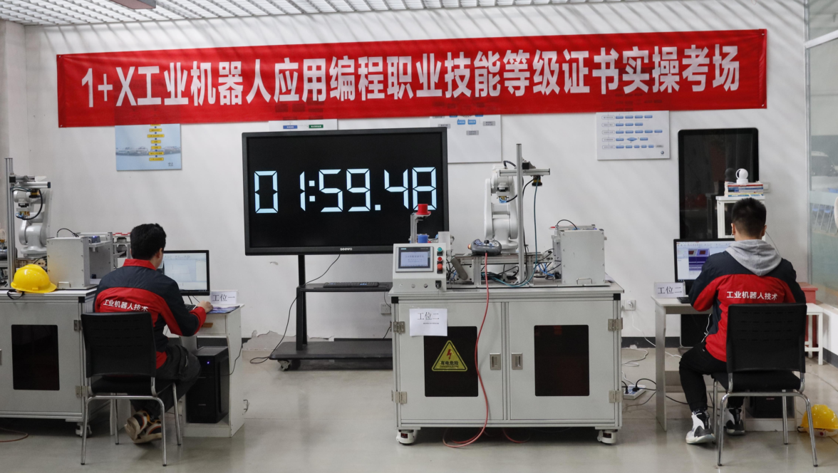 为深入贯彻《国家职业教育改革实施方案》精神,推进新时代职业教育的改革发展,做好1+X证书制度试点工作。智信学院12月3日-5日在现代制造技术搂工业机器人实训中心,圆满完成“1+X” 工业机器人应用编程职业技能等级(中级)证书考评工作。工业机器人技术专业20名学生参加此次考试。