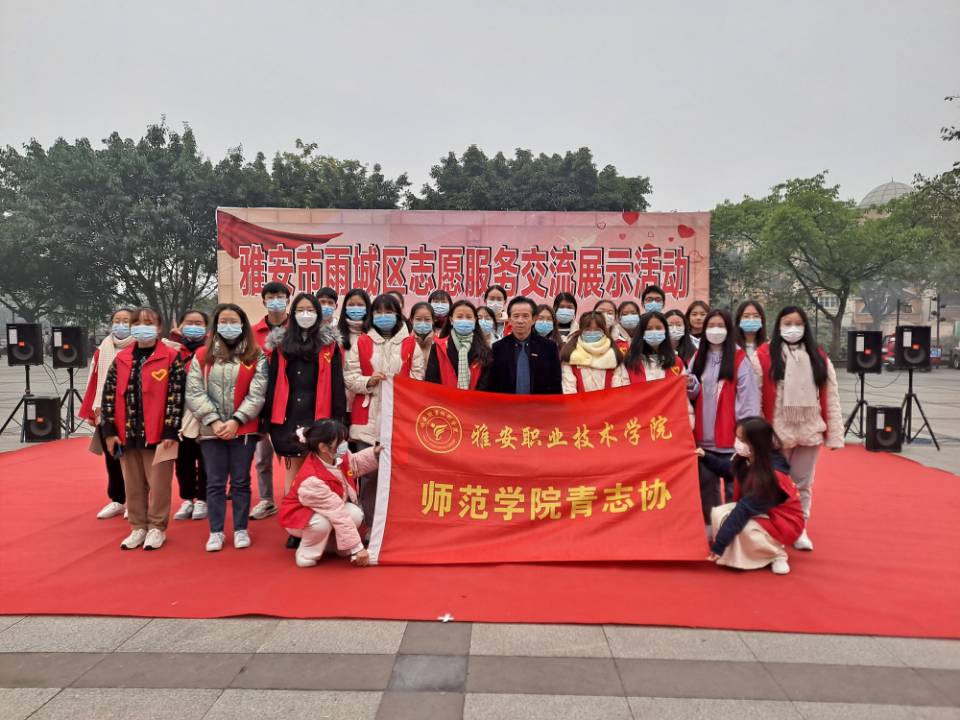 2021年12月5日是第36个国际志愿日。12月6日,雅安市雨城区精神文明建设办公室在三雅园隆重举行“雅安市雨城区志愿者服务交流展示”主题活动,师范学院团总支组织五十名学生志愿者参加活动。