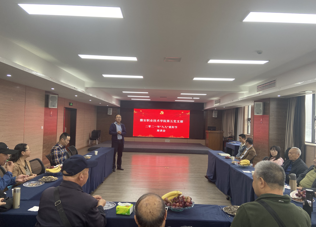 岁岁重阳,今又重阳。为进一步弘扬中华民族尊老、敬老、爱老的传统美德,进一步做好关心退休教职工工作,2021年10月12日下午,机关后勤党总支第五党支部在聚雅厅召开了计财处、基建后勤处退休教职工重阳节慰问座谈会。