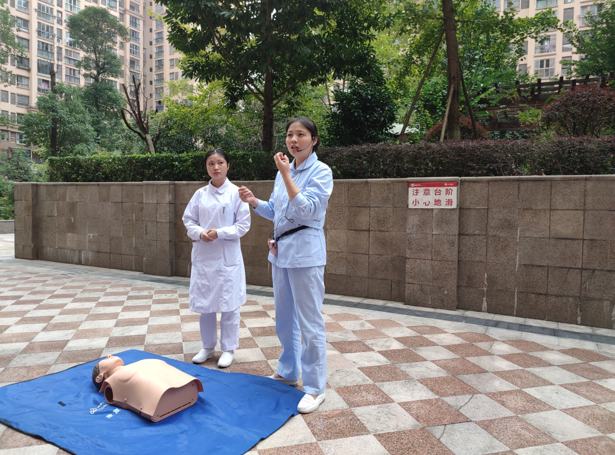 身着红色志愿服和白色护士服的志愿者们有序开展了义诊活动 。一组为社区居民宣讲“合理膳食,健康生活”及高血压预防相关知识,一组为社区老人测量血压。张雪庆为老年人宣讲急救知识,强化老年人卫生健康意识;黄丹指导志愿者为老年人进行健康护理。志愿者热情的服务得到了居民们的一致好评。