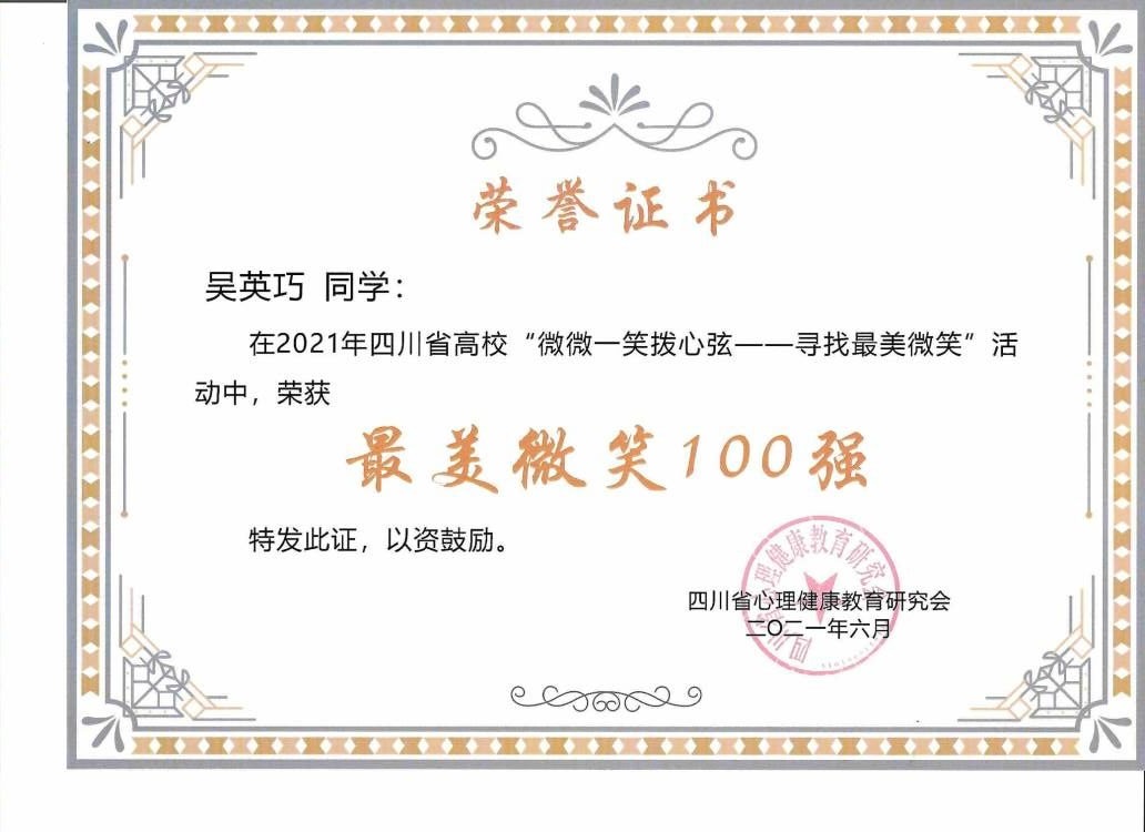 为庆祝中国共产党成立 100 周年,展现新时代大学生的良好精神风貌,四川省心理健康教育研究会联合西南石油大学举办“2021年四川省‘微微一笑拨心弦—寻找最美微笑’”活动。