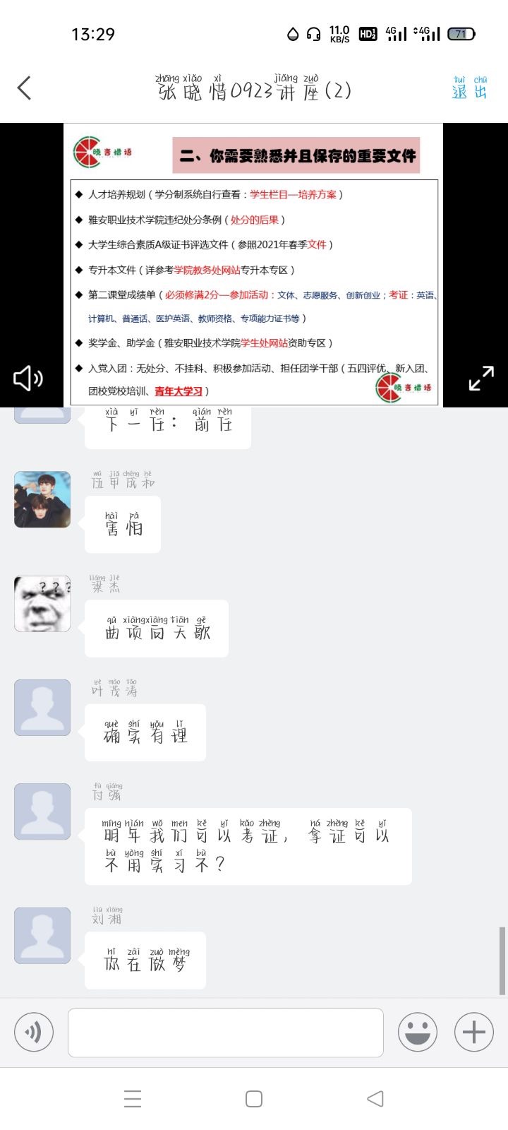 张晓惜在简单介绍学校概况、人才培养、奖助贷政策后,又从党团培养发展、做好职业生涯规划、注重情商培养、提高人际沟通技巧、综合素质全面发展五个方面重点讲解如何让大学生活精彩丰富,不留遗憾。她提醒新生青春逢盛世,奋斗正当时;要牢记初心,坚定理想信念,着力锤炼高尚品格,不断增长能力才干,保持奋斗精神,不负韶华,不负青春。讲座结束,同学们纷纷表示干货满满,入学的疑惑一一得到解答。