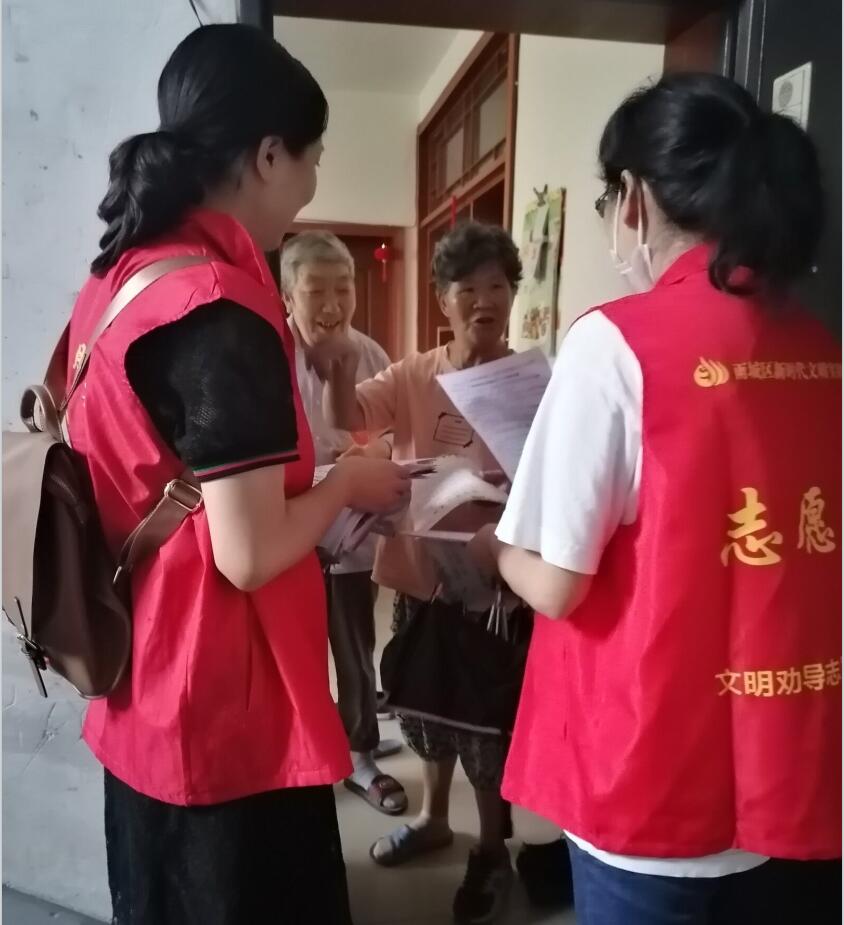 在爱国苑小区,党员志愿者们入户讲解了创建全国文明城市的相关知识,提高居民群众对文明创建工作的知晓率、支持率和参与率,号召居民积极参与责任区域内乱堆乱放、车辆乱停、飞线充电、不文明养犬等整治工作,共同营造社区文明和谐秩序。