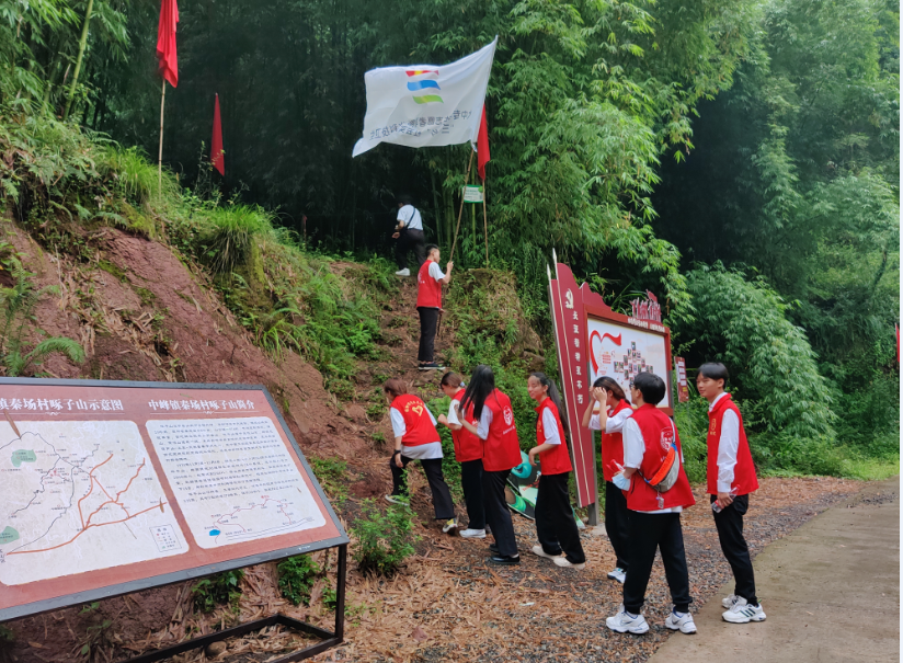 7月15日,学院“红旅寻根”大学生暑期三下乡社会实践团来到名山区啄子山百丈关战役遗址开展党史实践教育活动。院团委副书记叶芋伶、郭庆参与本次活动。