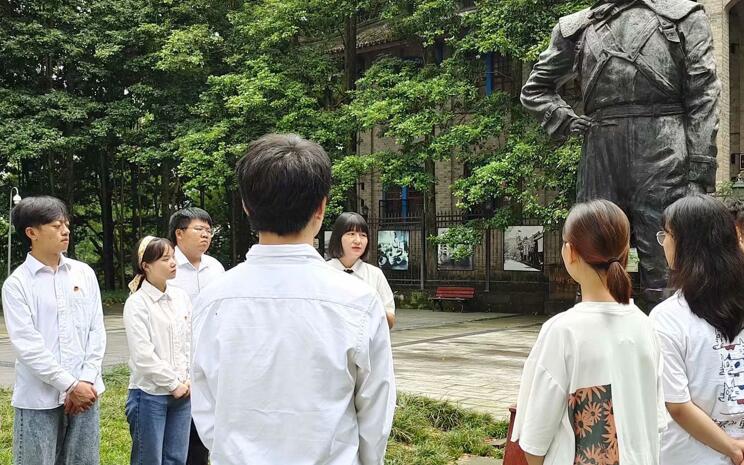 活动共分为党史教育实践和医疗志愿服务。老师和同学们先来到雅安西康博物馆,参观私立明德初级中学旧址,跟随文物足迹,探寻红色记忆。在明德校友抗日英雄“王牌飞行员”乐以琴雕像前,张晓惜老师为大家讲述了一趟生动的微党课。