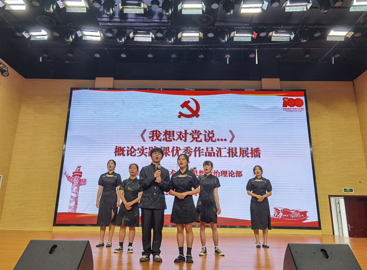 为深入推进思政课“三教”改革,丰富思政课实践教学形式和提升思政课实践教学效果,充分展现新时代高职大学生马克思主义理论素养和精神风貌。 7月6日,思政部分别在学院经开区校区学生活动中心和青年路校区博雅厅举行了“概论”课实践教学成果展示活动。思政部概论课教师和展示优秀作品的各班级学生代表参加了本次活动。