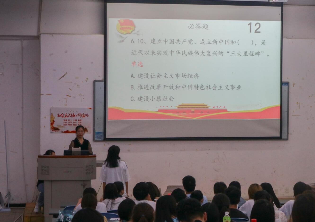 为庆祝中国共产党成立一百周年,推进党史深入人心,提升学院党史学习氛围。6月16日下午,由院团委主办的“学党史、强信念、跟党走”知识竞赛决赛在青年路校区图附102举行,16名同学参与现场比赛,200余名同学现场观摩,院团委副书记郭庆应邀出席。