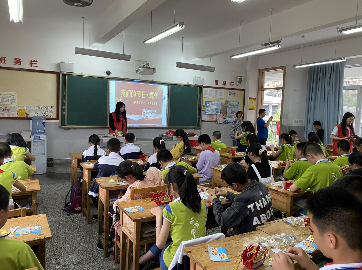 在爱国苑小区,党员志愿者们身穿志愿服、头戴志愿帽、手持劳动工具,重点对小区的垃圾、烟头、沿路落叶等认真进行了清理。志愿者们不怕脏、不怕累,积极发扬了奉献精神。经过一个多小时的劳动,小区面貌焕然一新,整洁有序,也受到社区工作者及小区居民的一致好评。在汉碑慈济小学,党员志愿者常恒老师为五年级四班的小朋友们深情讲述了爱国主义诗人屈原的故事和端午节的文化习俗。课后师生一道手工制作端午节龙舟和粽子挂件,将活动推向了高潮,为这个传统节日增添了喜气和活力。