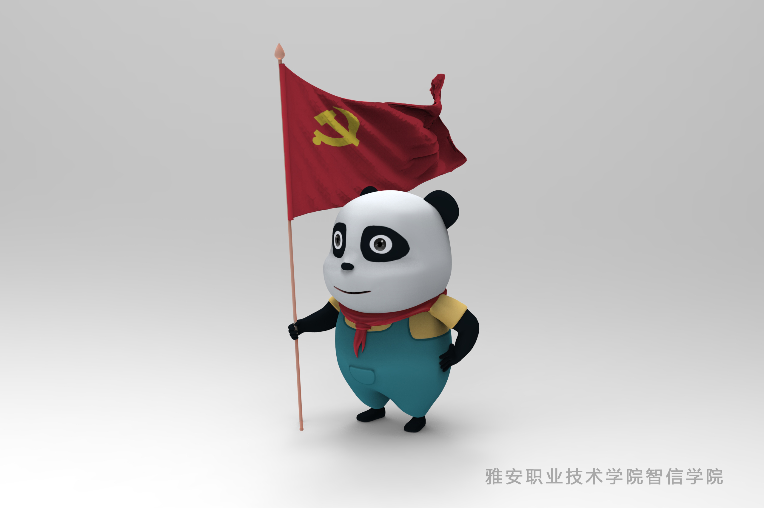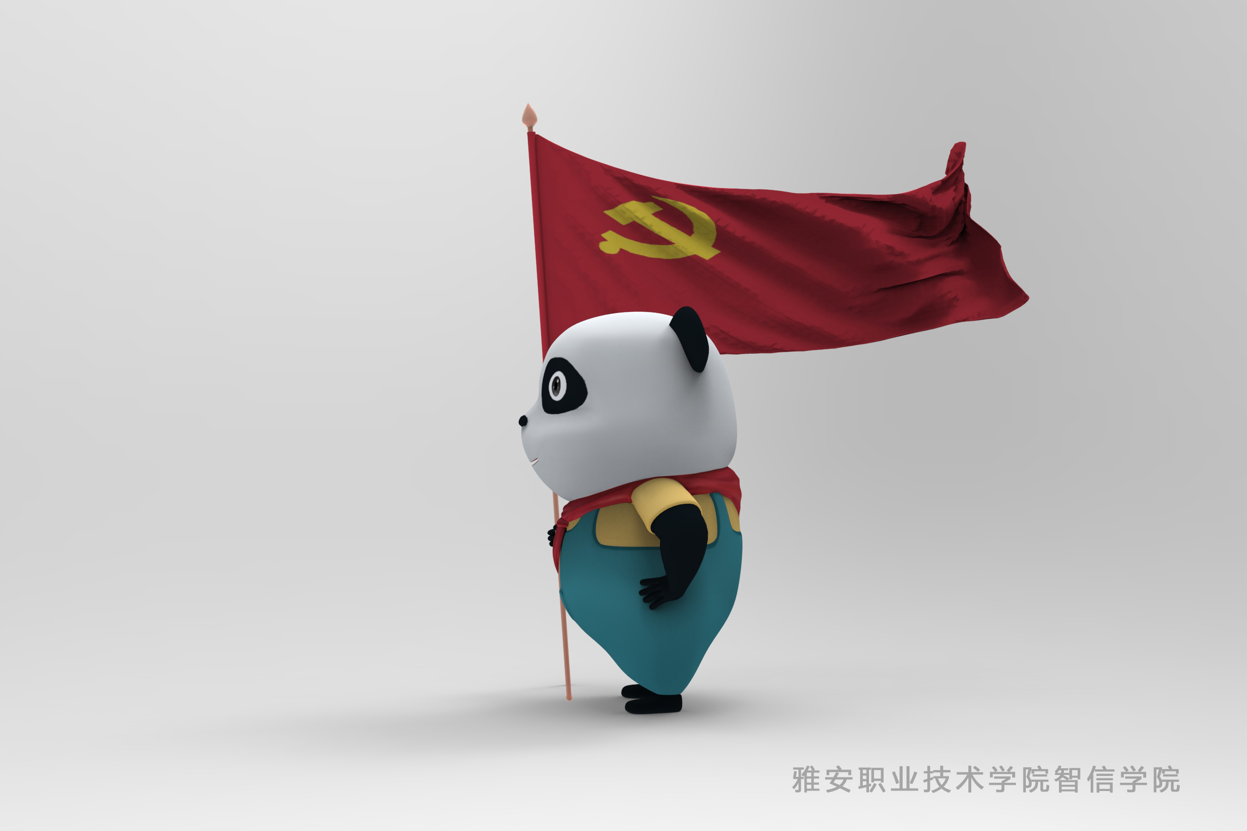 教学活动设计初衷是为了庆祝建党一百周年,将党史学习主题与专业学习融合,学生自主进行数字文创作品的构思与创作。同学们在周保兴的悉心指导下,用作品表达对中国共产党的热爱,团队合作在规定时间内完成了作品的创作,最终吴枰荭同学团队的《欢乐的熊猫工人》被评选为此次教学实践活动最佳作品。《欢乐的熊猫工人》作品原创了一个欢乐的熊猫工人形象,并在该形象上融入红色元素,动态欢悦,展现出了一个紧跟党走的熊猫工人的画面,象征着中国共产党领导下的工人阶级生活越来越好。
