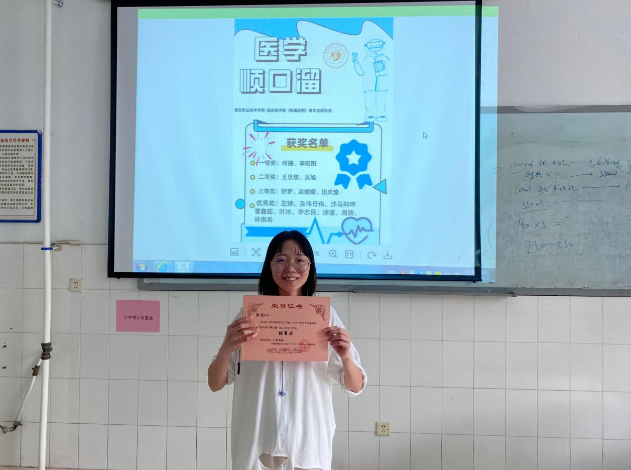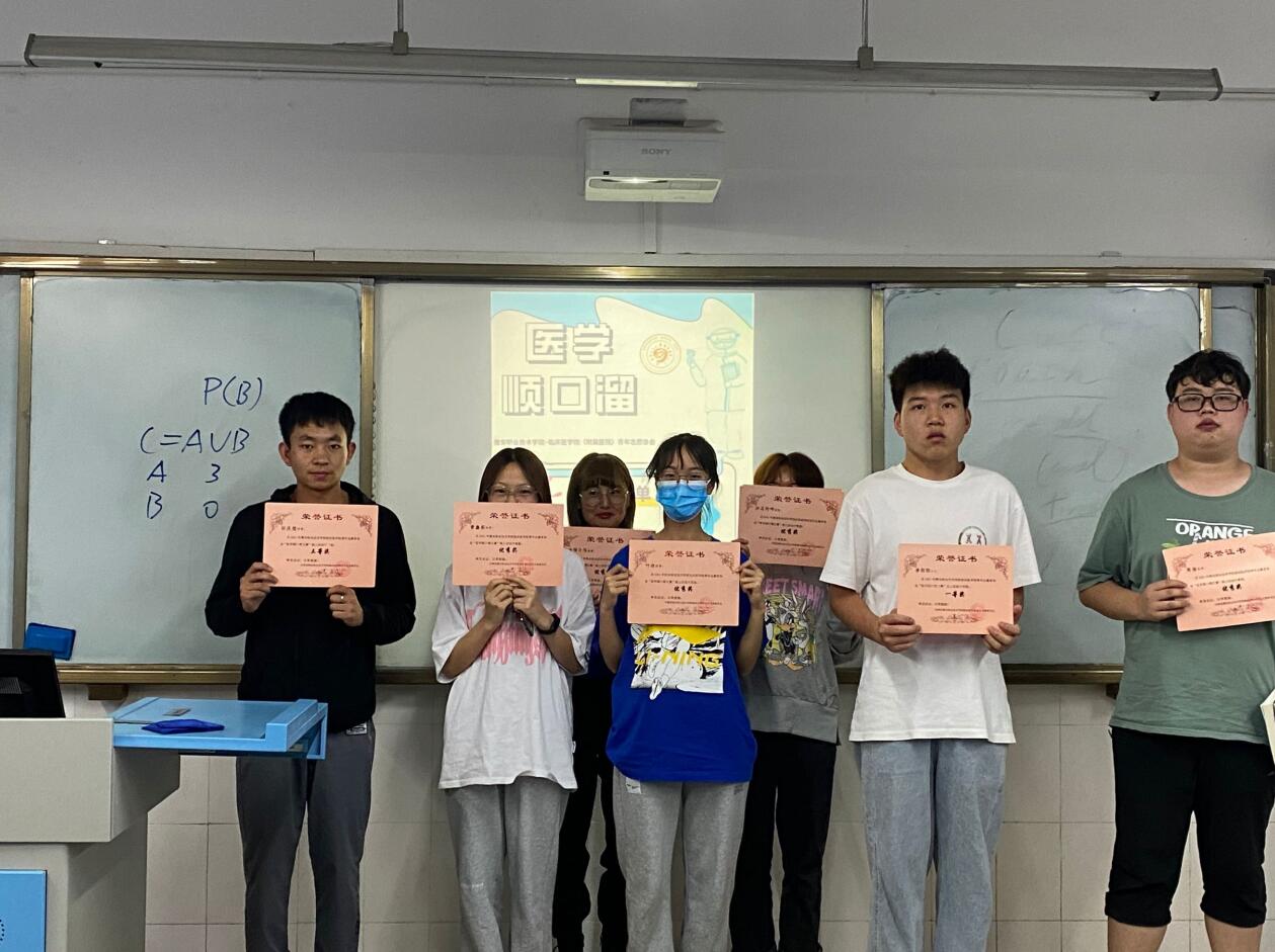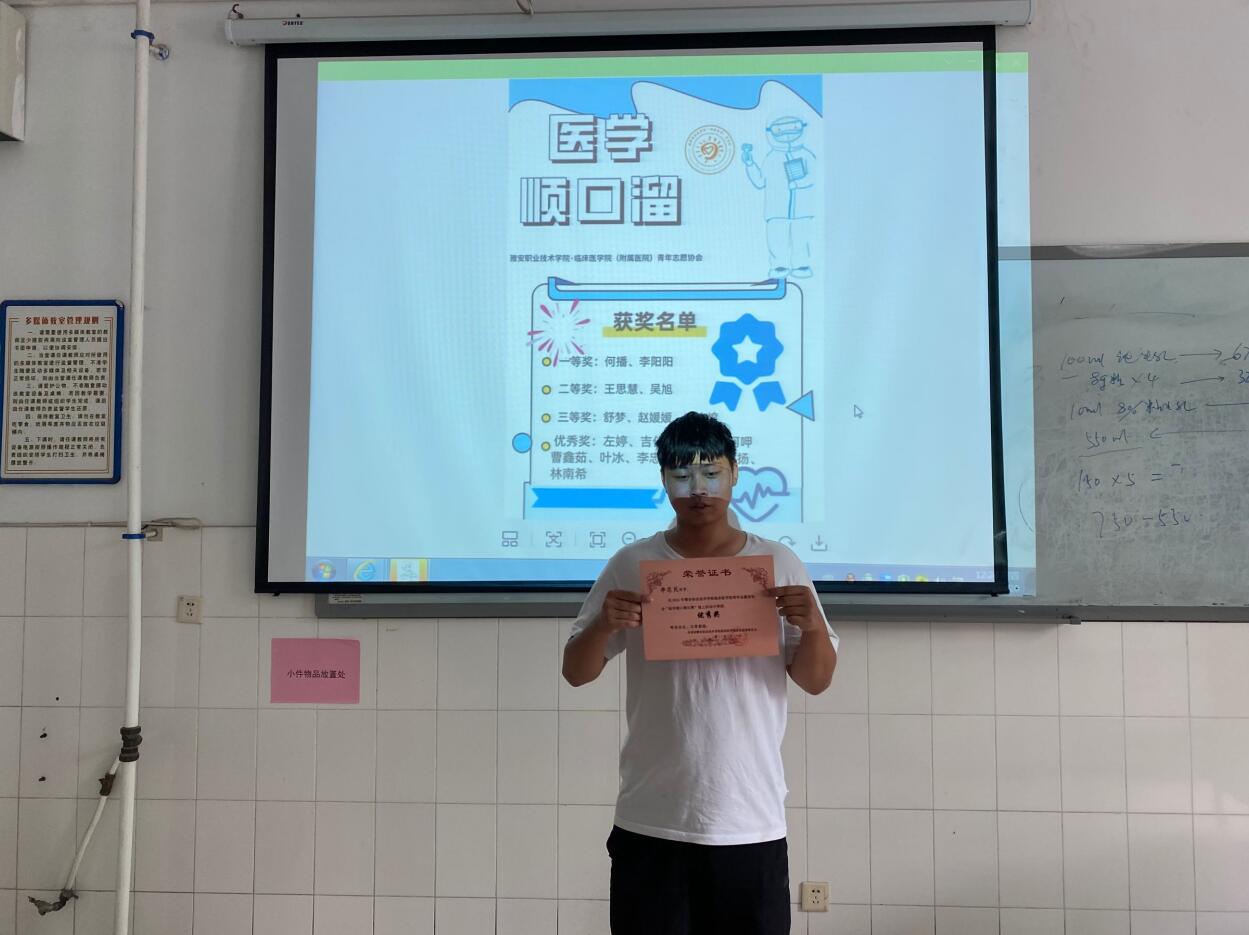预防疾病,健康出行,为加强人们对疾病的防控,提高学生对医学知识和疾病预防的认知,临床医学院(附属医院)青志协在团总支书记张晓惜老师、副书记母欧阳老师的带领下于3月—6月在线上线下开展“疾病防控,健康随行”医学顺口溜征集大赛。