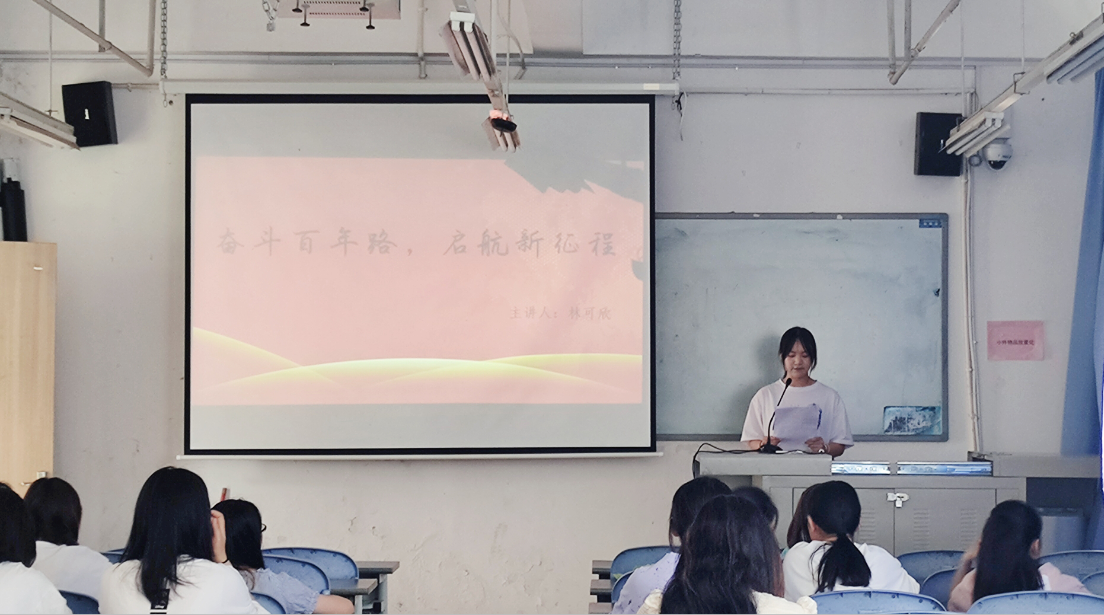 林可欣以“奋斗百年路 启航新征程”为主题,通过翔实细致的事例,生动感人的事迹,讲述了党一百年以来,活跃在历史舞台的先进青年代表,他们以坚韧不拔的毅力和奋发向上的精神勇做时代的弄潮。她号召同学们要将个人前途命运与国家发展紧密结合,不忘初心,努力提高自己的专业素养,将所学专业知识运用到实践中去,担当起全面建设社会主义国家的时代重任,努力成为德智体美劳全面发展的社会主义建设者和接班人。