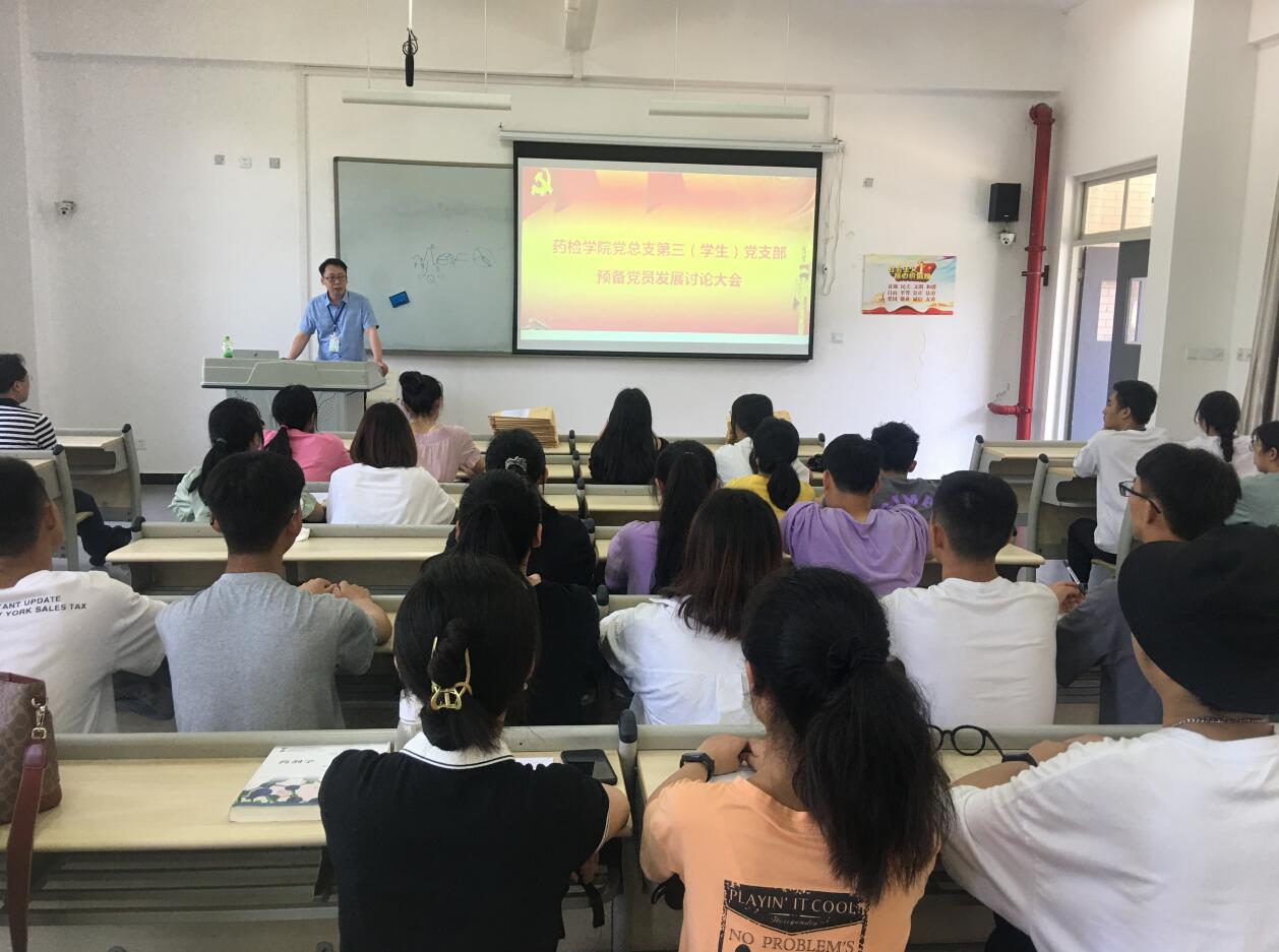 6月3日中午,药检学院党总支第三党支部在1205教室召开预备党员发展讨论大会。药检学院党总支书记杨泽刚,支部党员、发展对象,共计49人参加本次会议。会议由第三党支部书记杨文君老师主持。