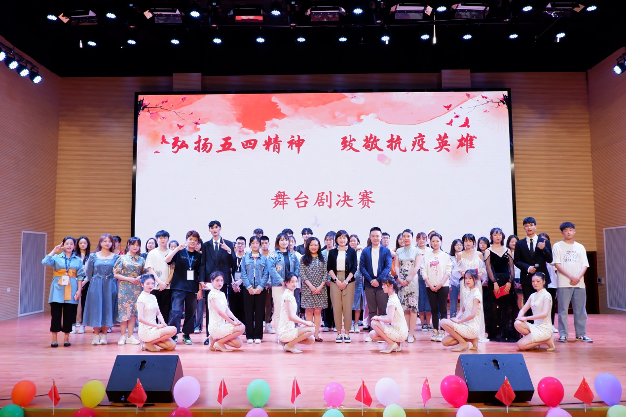 为大力弘扬“五四”光荣传统,激励和引领广大团员青年以青春行动助力疫情防控, 5月19日,由院团委主办、中医与康复养生学院团总支承办的“弘扬五四精神,致敬抗疫英雄”爱国舞台剧表演总决赛在经开区校区聚雅厅拉开帷幕。院团委副书记叶芋伶,中医与康复养生学院党政班子、团总支书记、辅导员以及学生共计260余人参加。