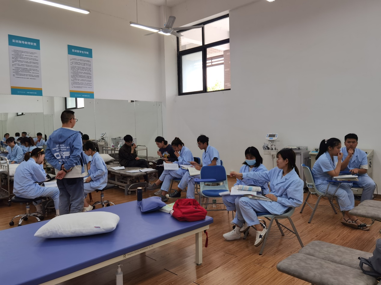本次学生集训时间为1天,集训前指导老师们认真研究大赛规程,精心筹划集训内容。上午由王源老师介绍本次大赛的时间、地点、内容及参赛选手的注意事项,周媛玲和赵强老师对问诊、评定等比赛项目进行仔细的讲解。下午王雪老师分享了往届优秀学生的参赛视频,之后王源老师就评定、治疗等比赛项目作了详细解读。随后12名同学分为4组对病例进行问诊、评定和治疗等技能实操,雅安名中医李明荣老师、康复养生教研室主任陈航以及舒兰清等教研室老师们在一旁认真观察和点评,悉心指导。晚上同学们在学习通上完成线上知识考核。