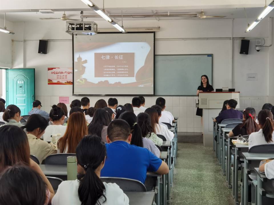 为庆祝中国共产党成立100周年,讴歌党的辉煌历程和丰功伟绩,表达师生爱党爱国情怀,5月11日下午,经济与管理学院直属党支部在青年路校区教学楼B205开展“重温雅安红色记忆,传承红军长征精神”主题党日活动,党支部书记高运荣主讲 “品读毛泽东旧诗词 传承红军长征精神”讲座,团总支书记李思捷、党员教师代表、2021年党员发展对象、入党入团积极分子等共计120人参加活动。