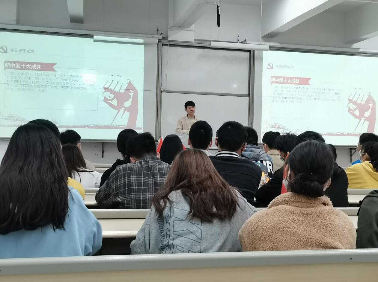 团总支副书记卫晨曦结合“四史”教育,以“山河破碎与百年逐梦”、党的成立与“民族独立,人民解放”之梦、党的探索与“国家富强,人民富裕”之梦、党的新征程与“中华民族伟大复兴”之梦等为内容,解读了中国共产党的逐梦之路和经验启示,一个半小时的精彩讲授深深吸引了同学们,爱党、拥党、护党之心油然而生,激励大家努力学习、紧跟党的步伐。