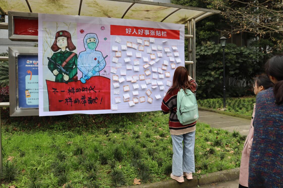 雷锋在身边,志愿我先行。临床医学院(附属医院)团总支书记张晓惜带领志愿者在公寓宿舍楼下,邀请同学们参加好事留言活动,写下自己做过的一件好事,就可获得一份鲜花种子,寓意着雷锋精神在同学们心中生根发芽开花。新颖的方式吸引了很多同学参与其中,大家纷纷将自己曾做过的好人好事写下来张贴在宣传板上。活动最后,志愿者来到教学楼、操场、花园进行卫生打扫,在具体行动和点滴小事中践行雷锋精神。